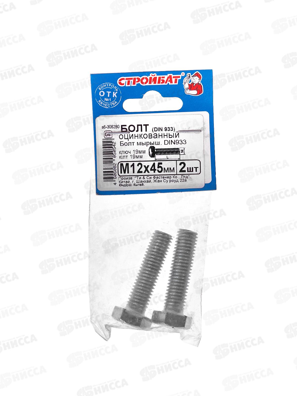Код:582901; Болт (DIN933) М12x 45 (белый цинк 2шт)