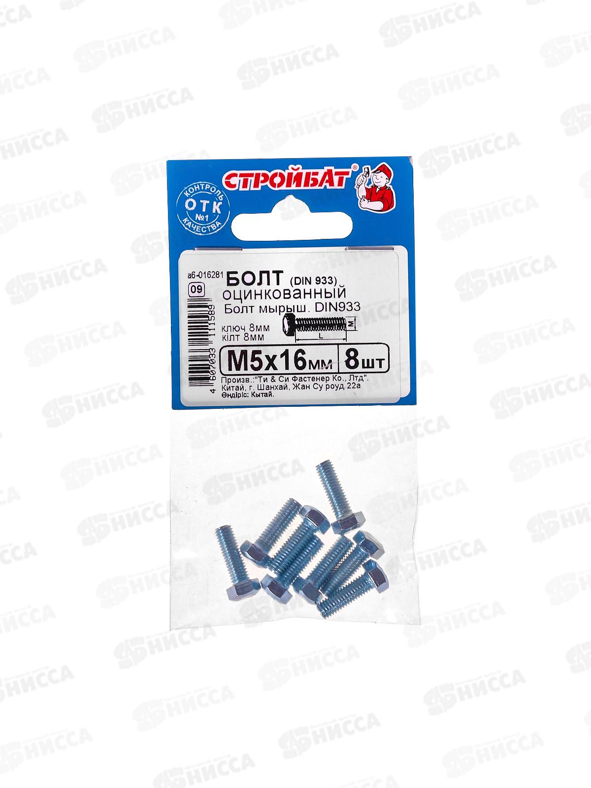 Код:582902; Болт (DIN933) М 5x16 (белый цинк 8шт)