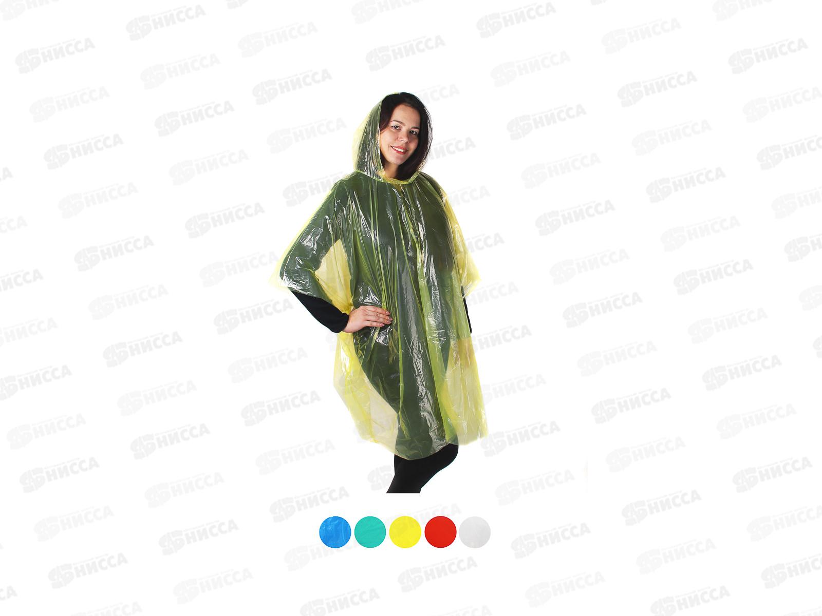 Дождевик зеленого цвета из полиэтилена на кнопках. Дополнительной защитой служат завязки на капюшоне и резинки на рукавах.Характеристики:Торговая марк...