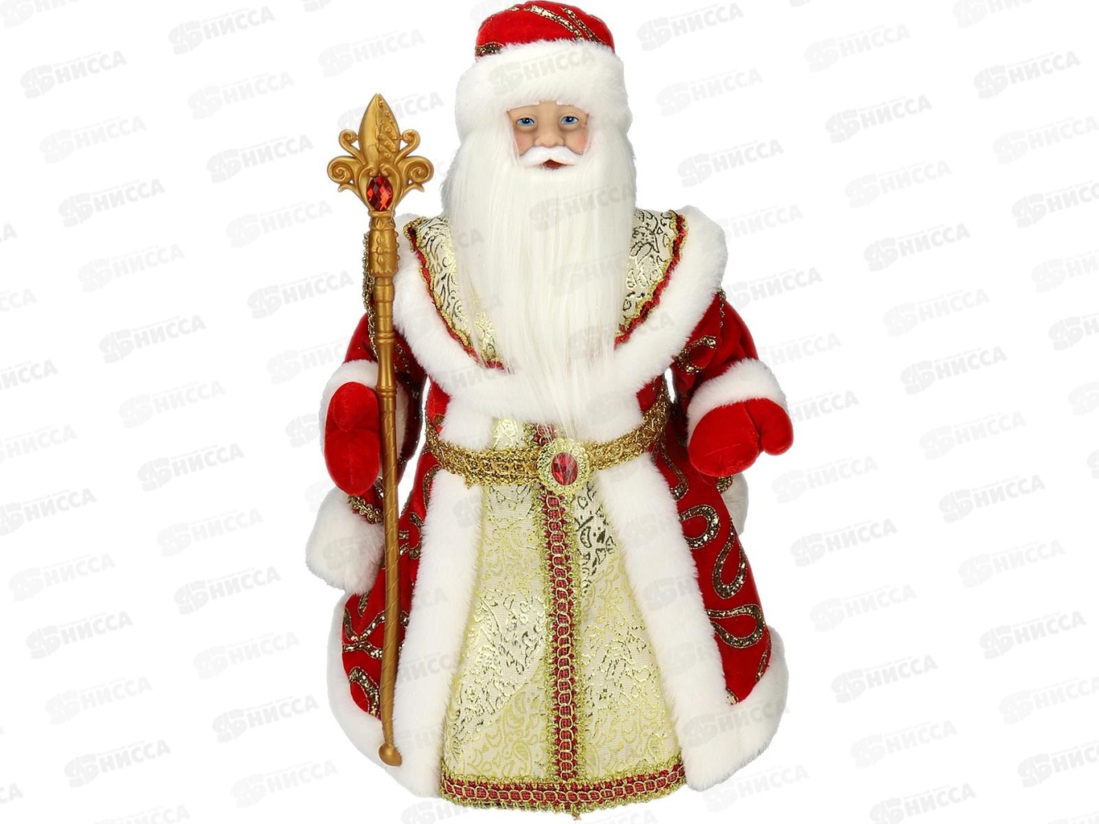 Код:585825; Дед Мороз в красной шубе с пайетками и белым мехом, 40см, Т-6584