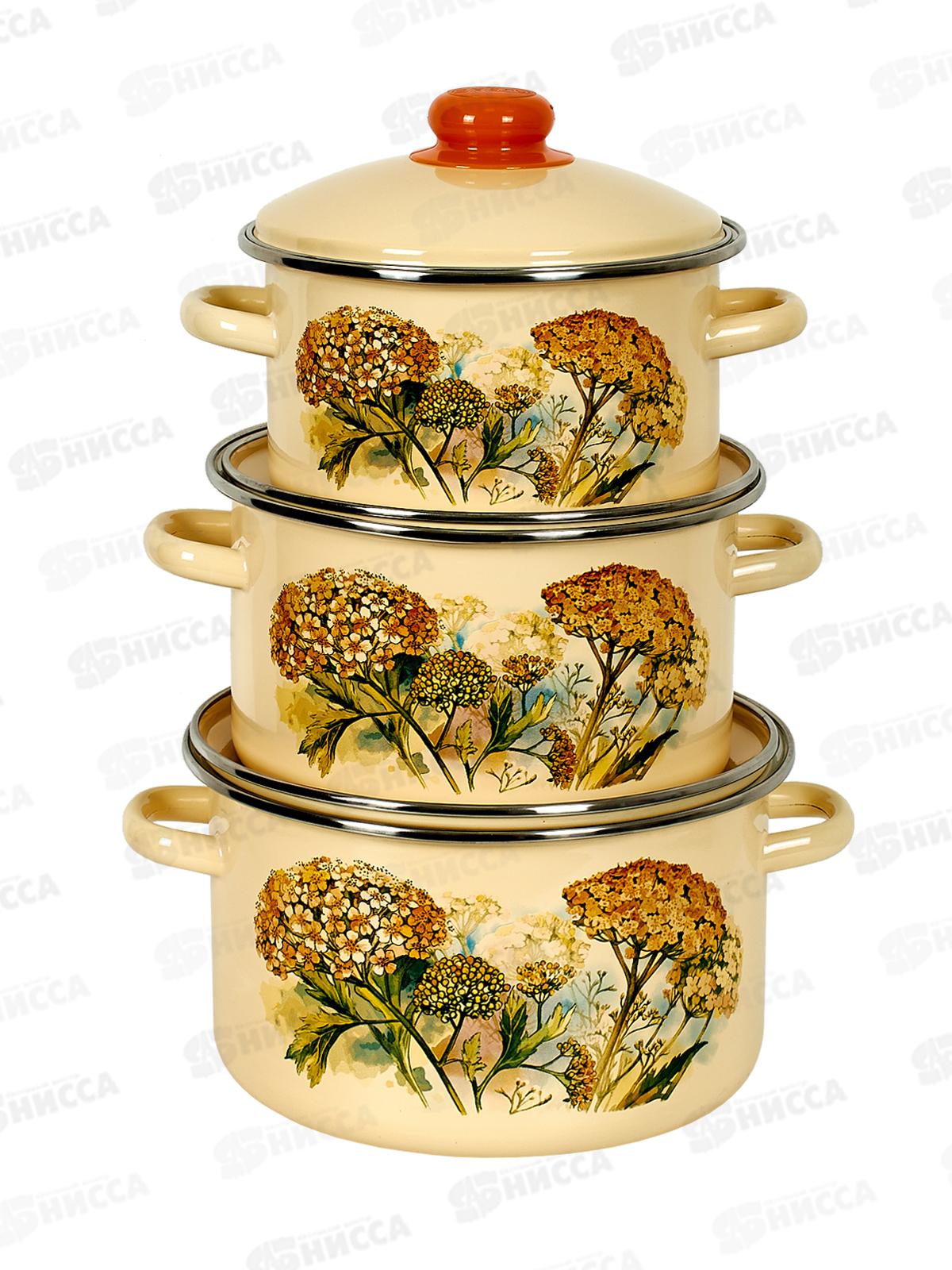 Код:396141; Набор кастрюль Цветочное поле (2+3+4л) 2-3161/7