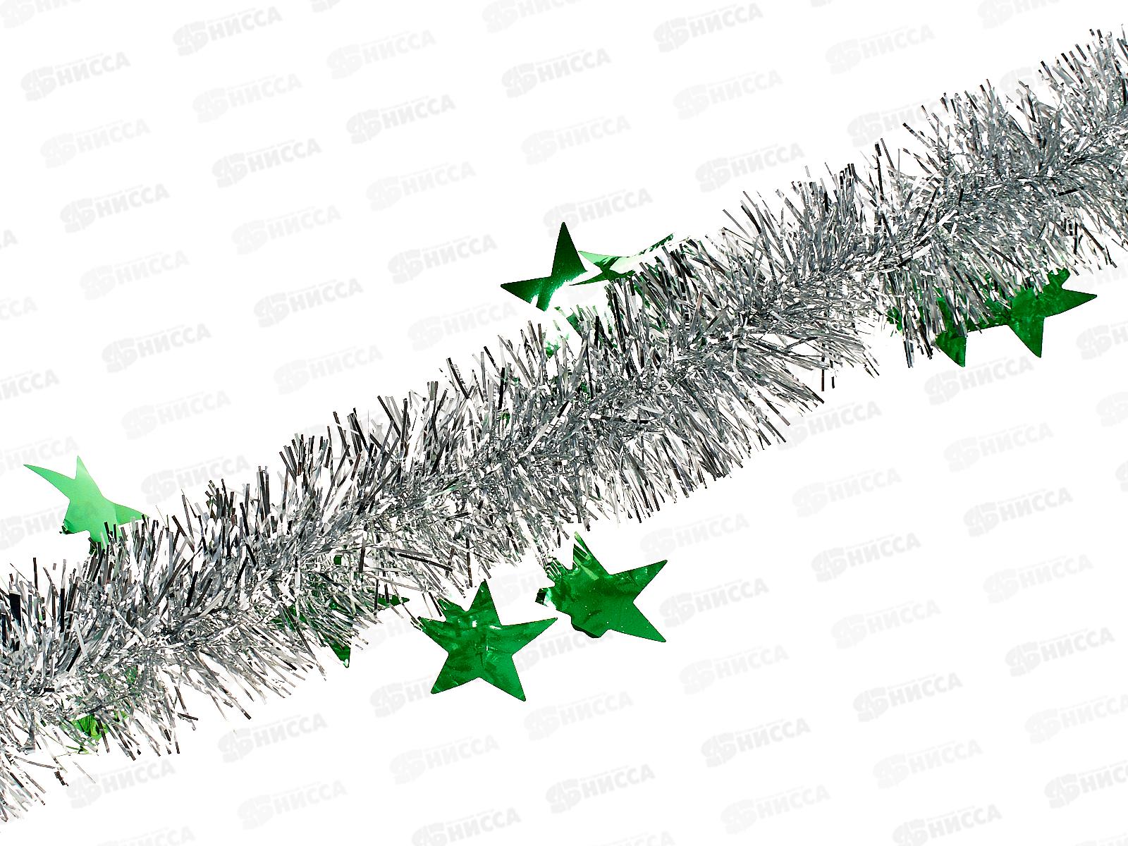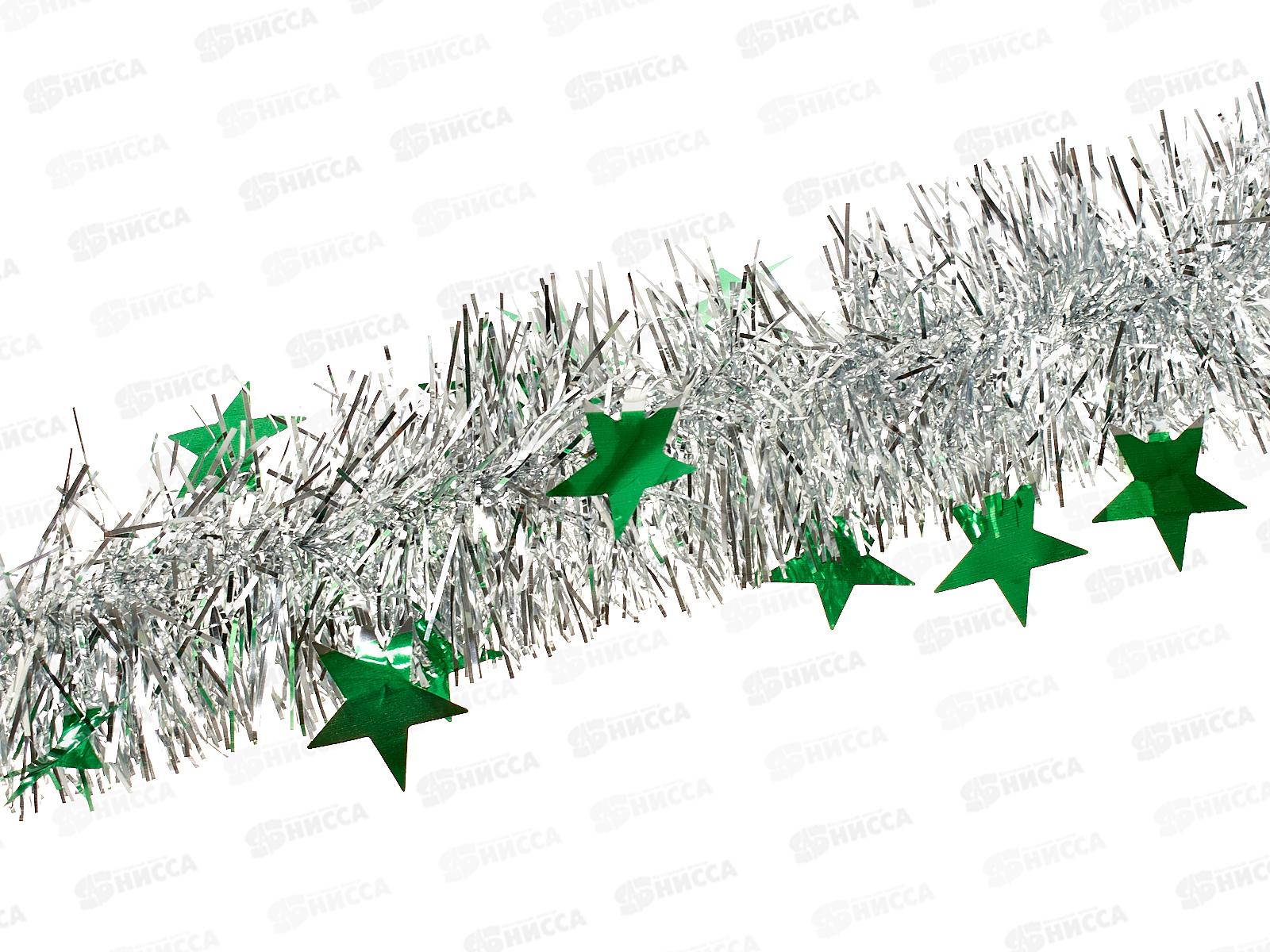 Код:502719; Мишура 002015 звездочки большие 5смх2м. серебро+зеленый, AL-3356 *600