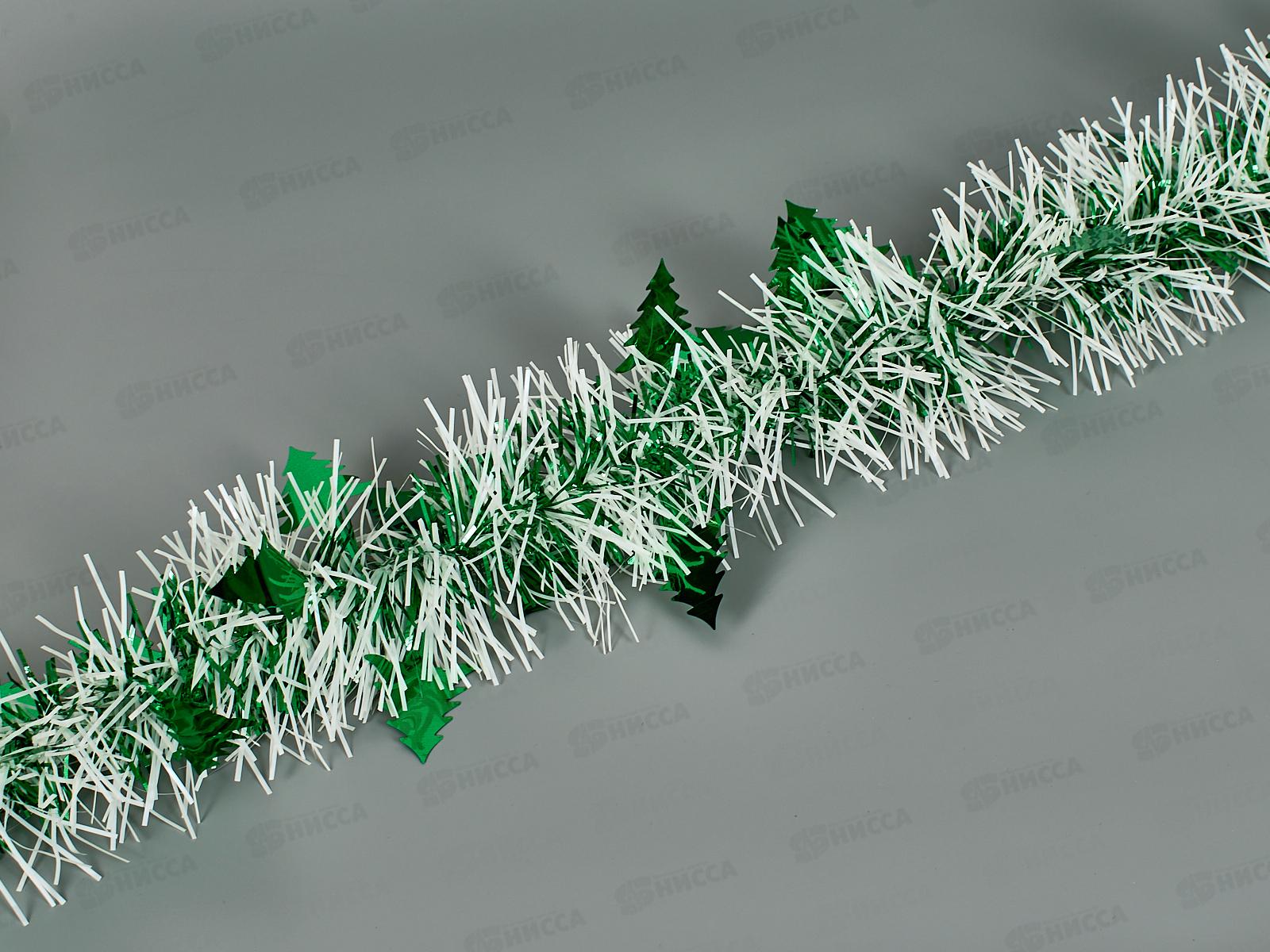 Код:502821; Мишура 002015 8см х 2м , AL-8018, белый с зелеными елочками *360
