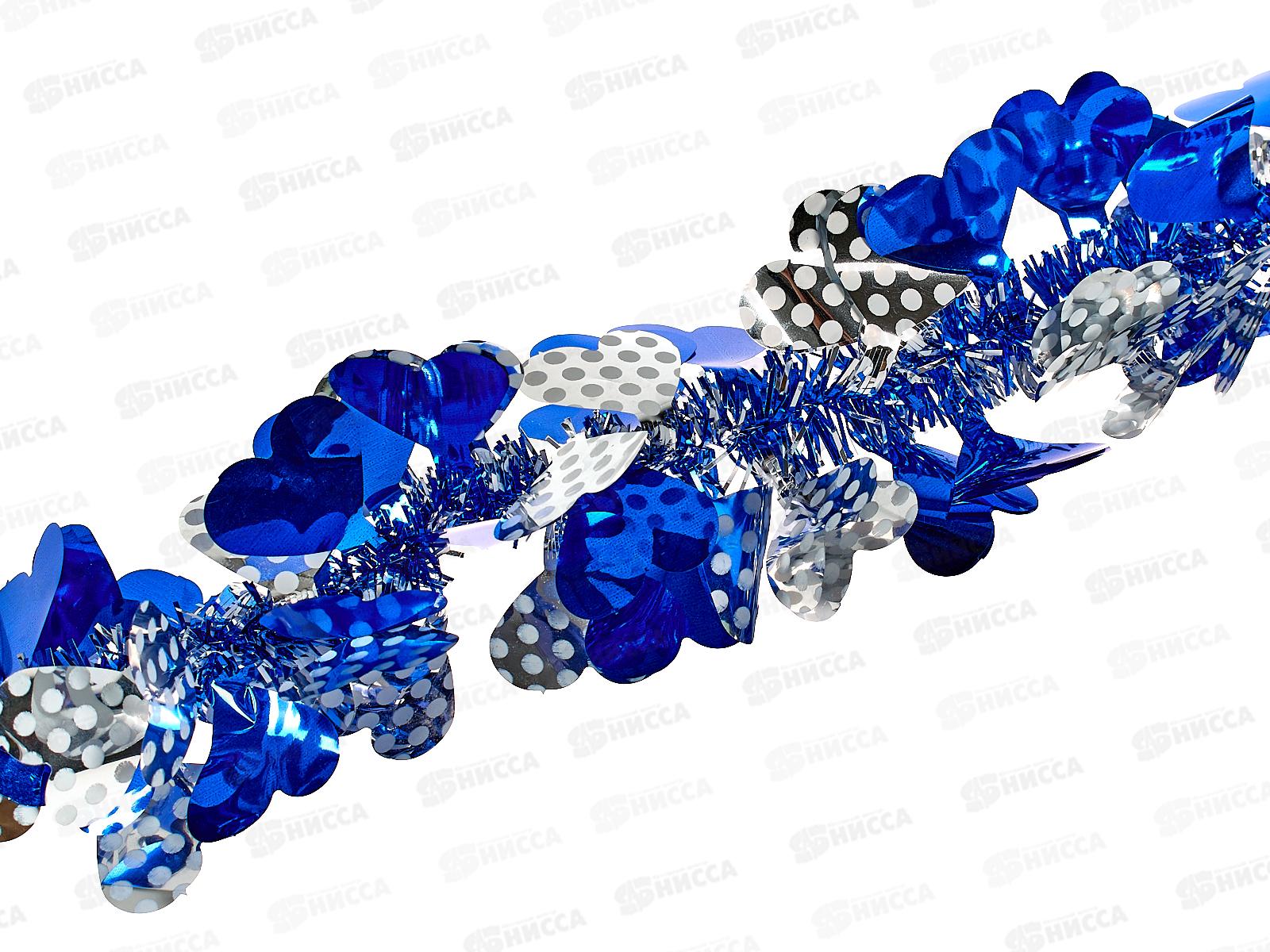 Код:502843; Мишура 002015 8см х 2м, AL-8020, синий-серебро с сердечками*500