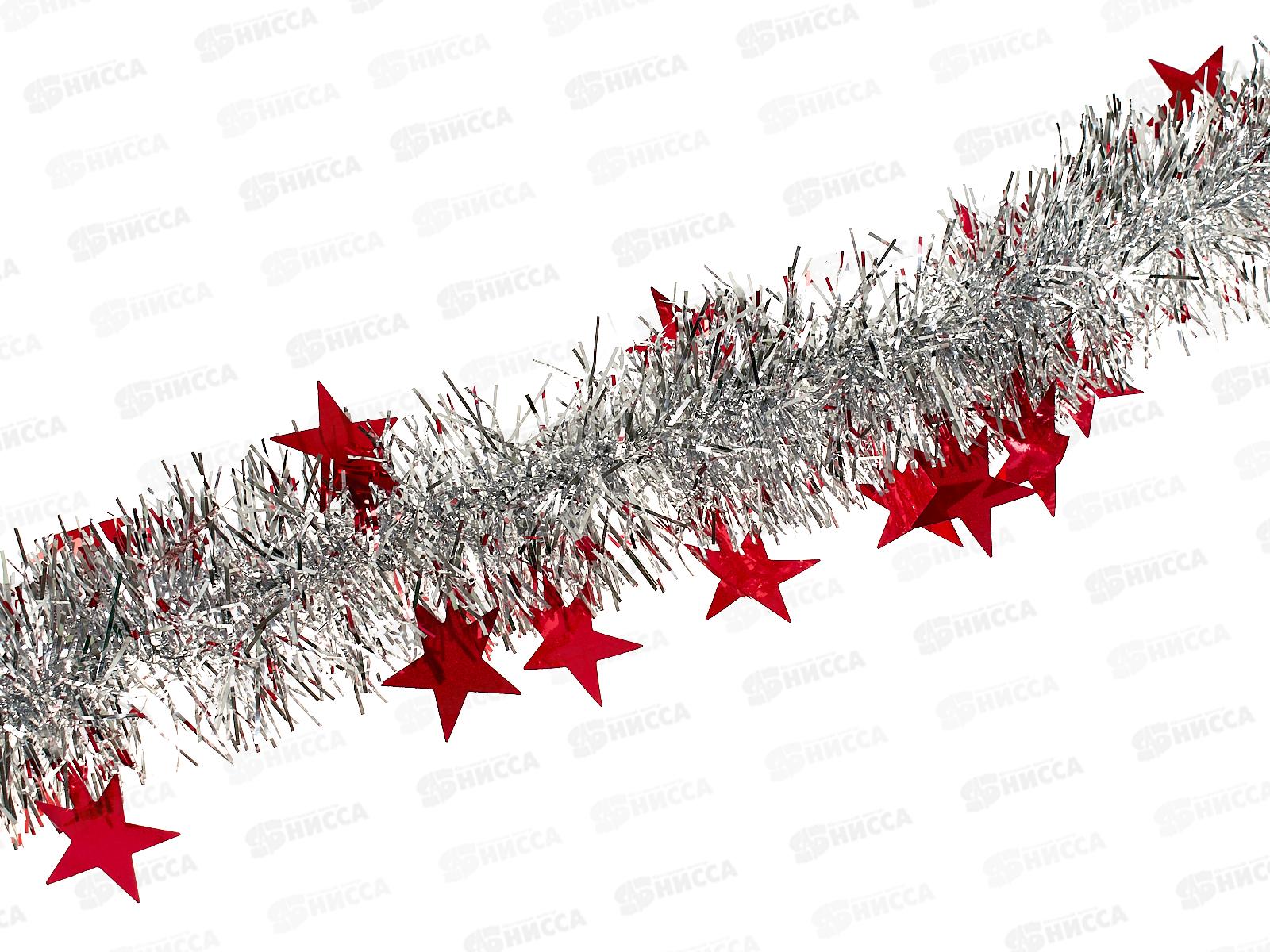 Код:502716; Мишура 002015 звездочки большие 5смх2м. серебро+красный, AL-3356 *600