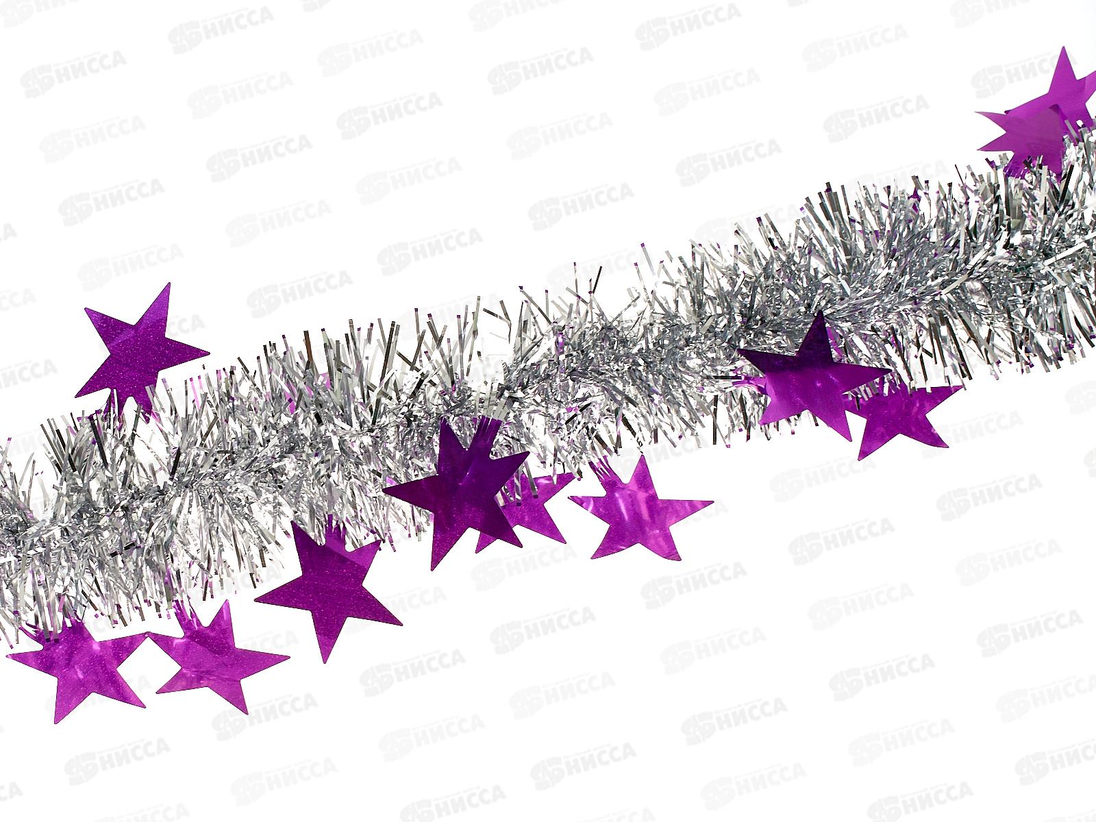 Код:502701; Мишура 002015 звездочки 5см х 2м. сиреневый+серебро, AL-3346, *800
