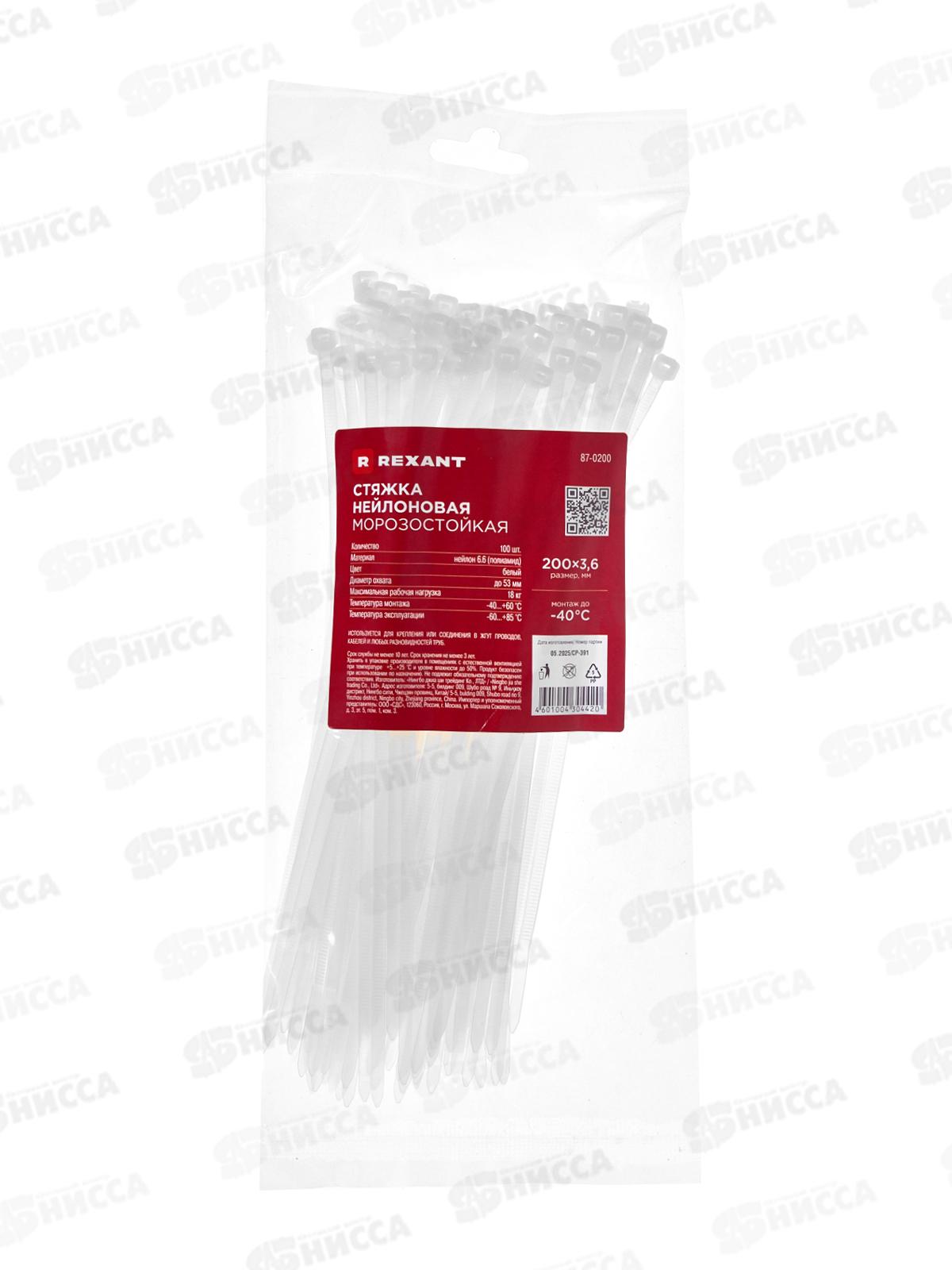 Код:594994; Стяжка нейлоновая морозостойкая 200*3,6мм, белая 100шт, REXANT, 87-0200
