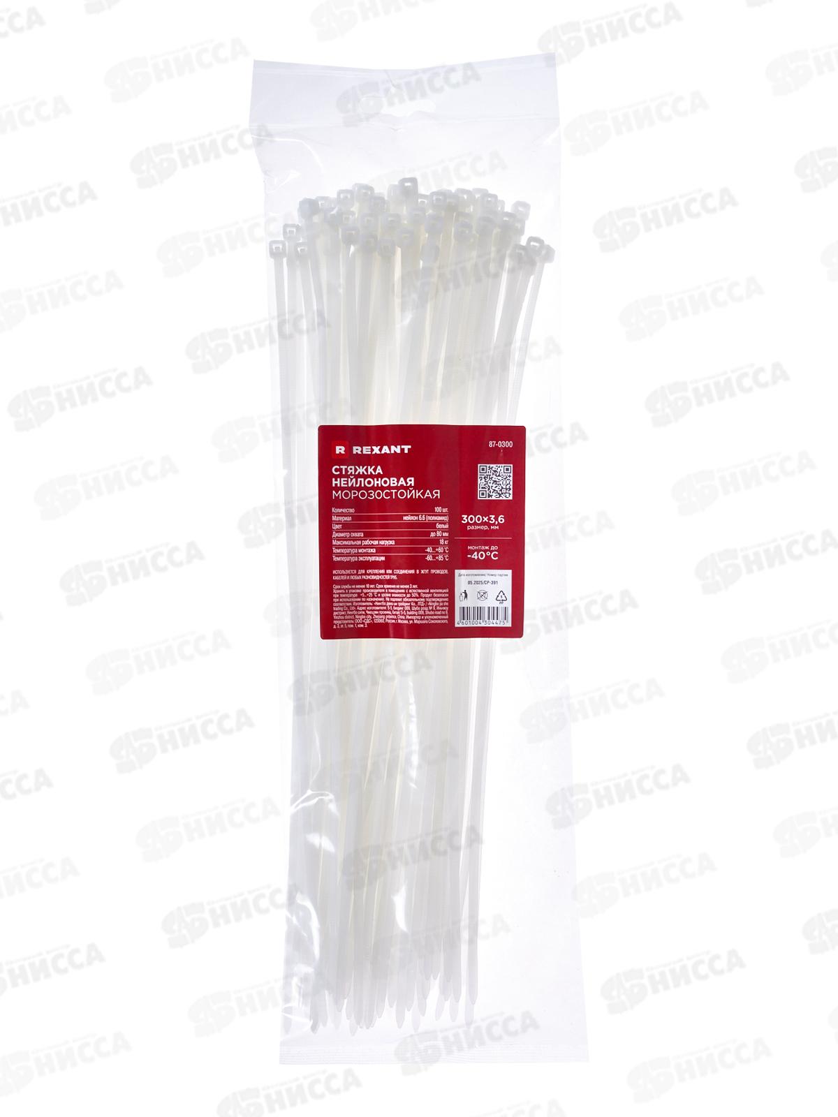Код:594998; Стяжка нейлоновая морозостойкая 300*3,6мм, белая 100шт, REXANT, 87-0300
