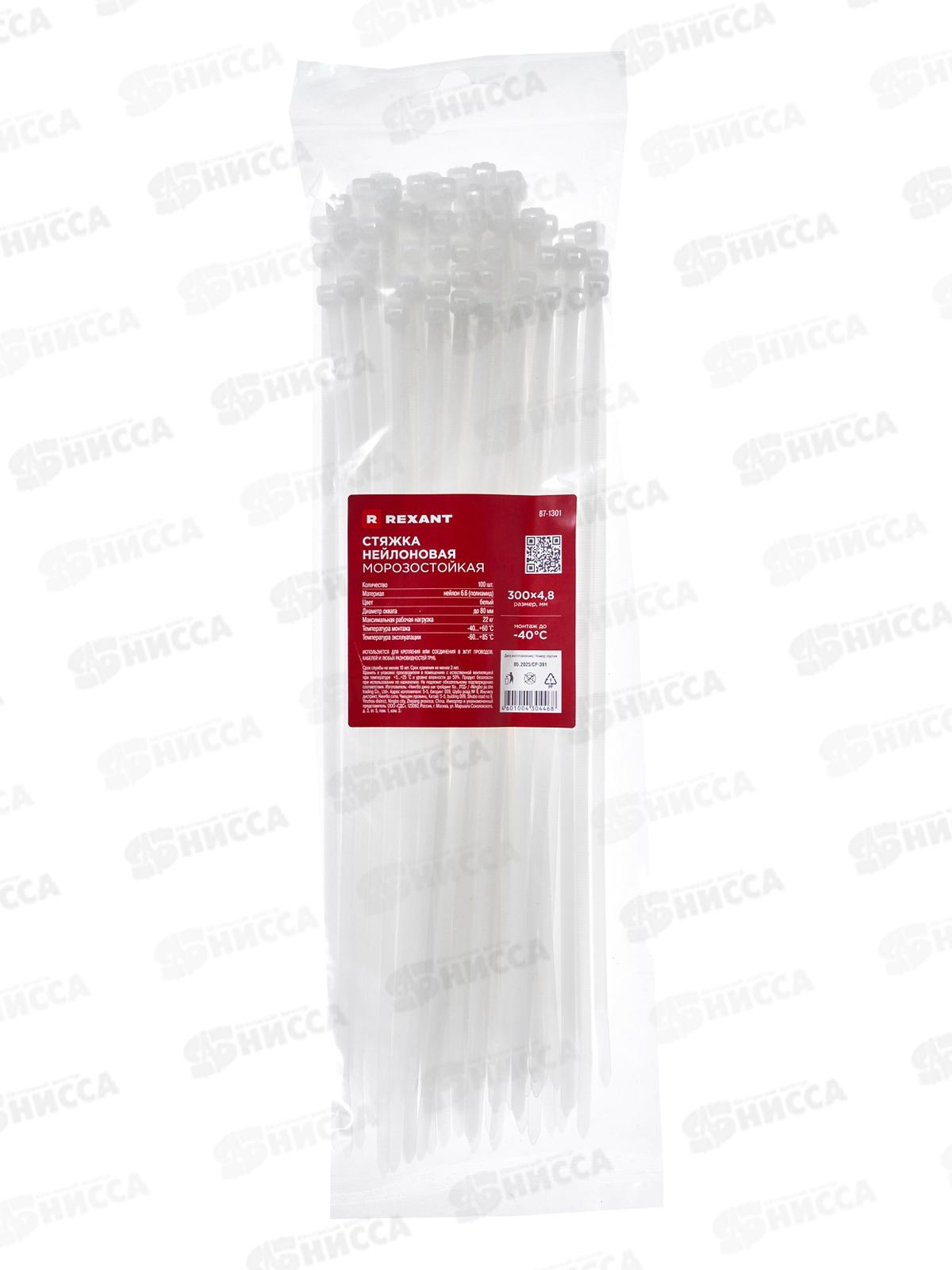 Код:595000; Стяжка нейлоновая морозостойкая 300*4,8мм, белая 100шт, REXANT, 87-1301
