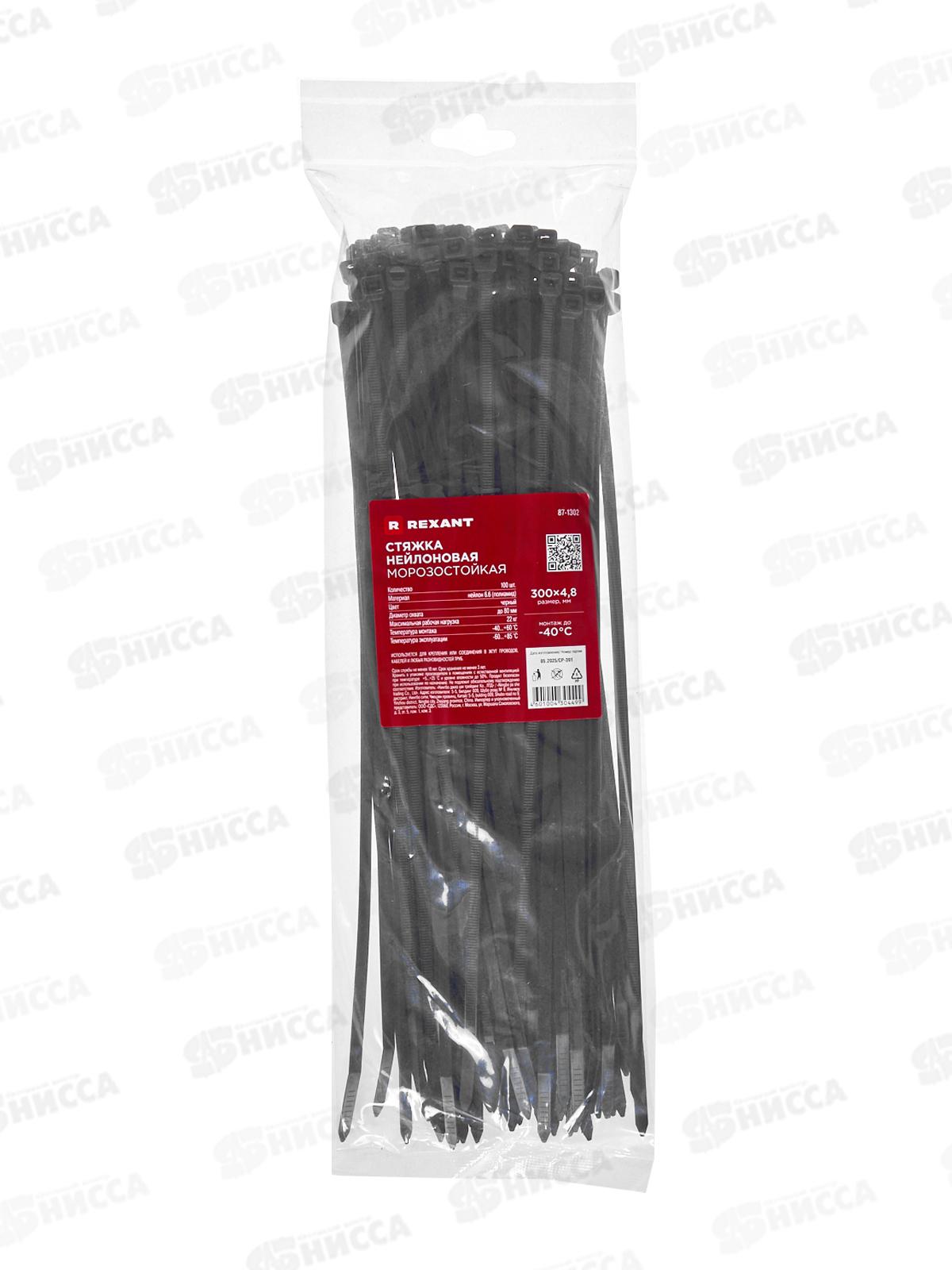 Код:595001; Стяжка нейлоновая морозостойкая 300*4,8мм, черная 100шт, REXANT, 87-1302