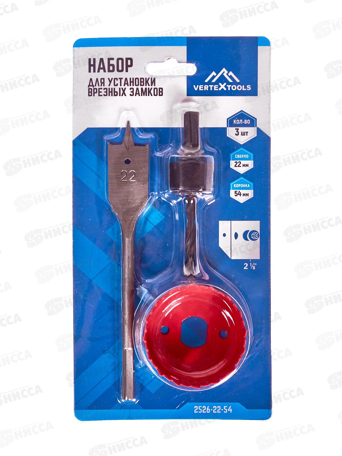 КомплектацияКоронка 54 ммНаправляющее сверлоПеровое сверло 22 ммХарактеристики:Бренд: VertextoolsАртикул: 2526-22-54Тип товара: Набор для установки вр...