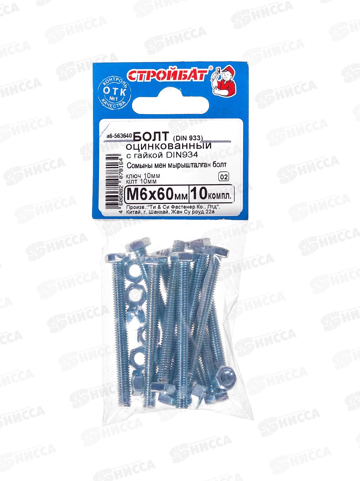 Код:582862; Болт DIN 933 М 6x60 с гайкой DIN934 (белый цинк 10шт)