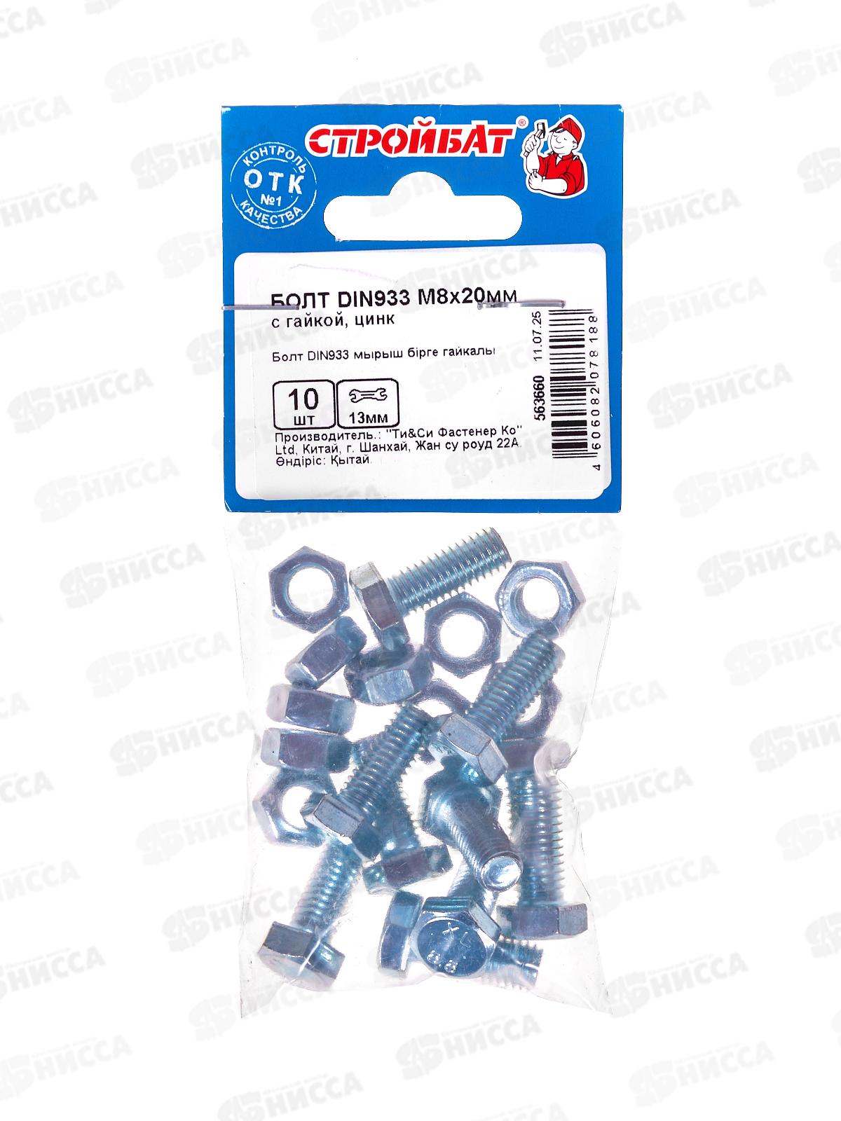 Код:582864; Болт DIN 933 М 8x20 с гайкой DIN934 (белый цинк 10шт)