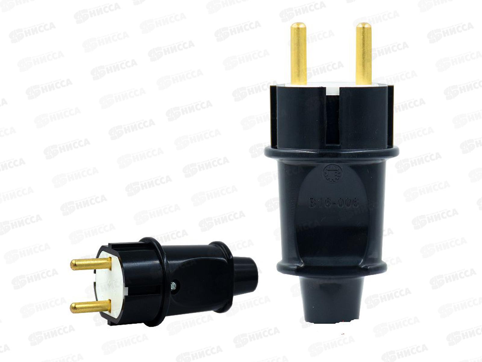 Код:219424; Вилка В16-002 угловая с заземляющим контактом с хвостом (Горс) 7з *350 ш