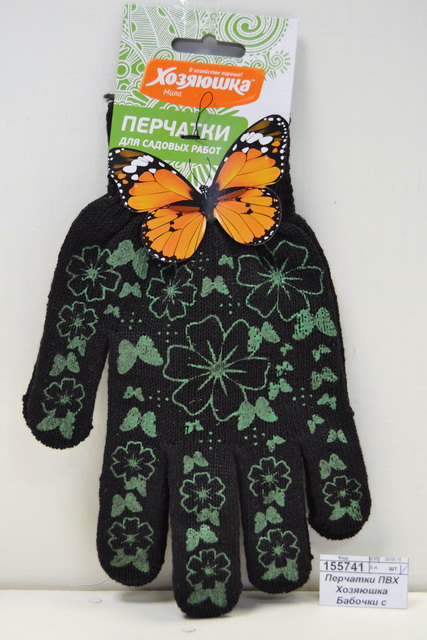 Код:155741; Перчатки ПВХ Хозяюшка Бабочки с напылением *150