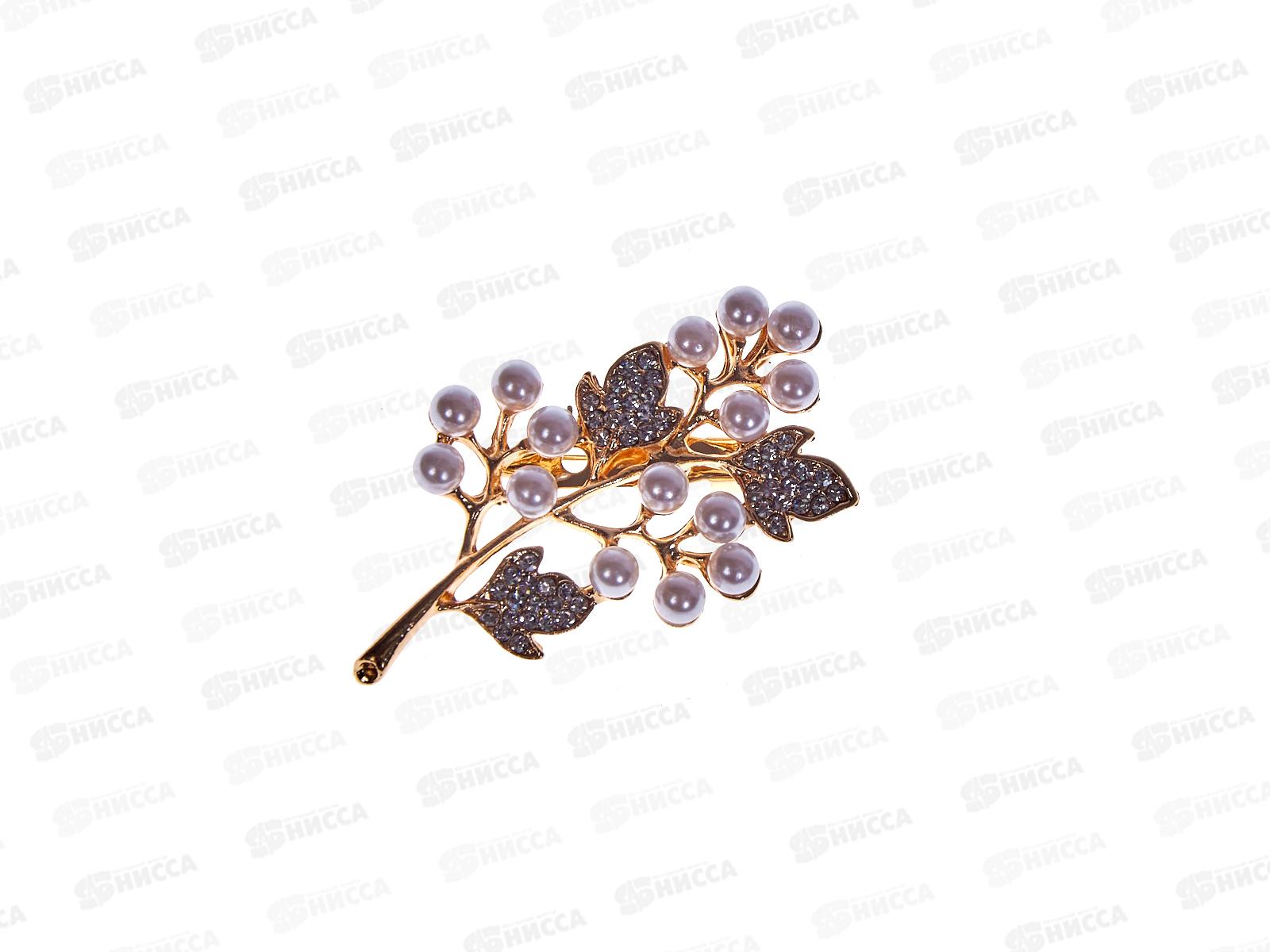 Код:500634; Брошь "Ветка" жемчужных ягод белый 9613639