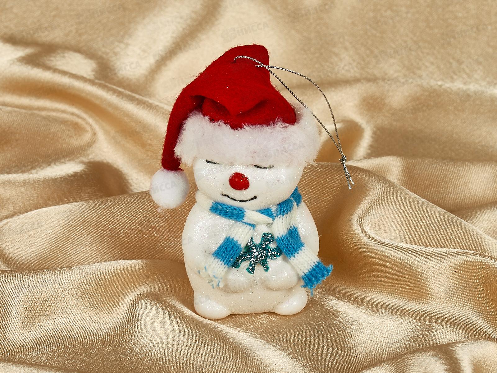 Код:539463; Елочная игрушка Зимний снеговик 6*11см красный 916-1157