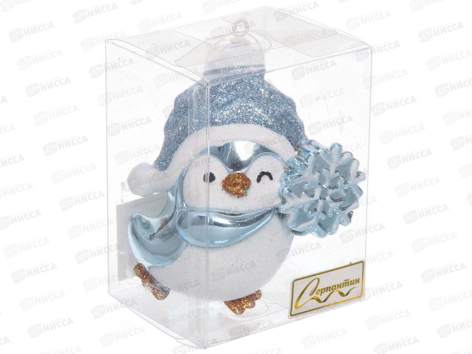 Код:588404; Елочная игрушка Веселый пингвиненок 8*6*9,5см голубой 916-1593