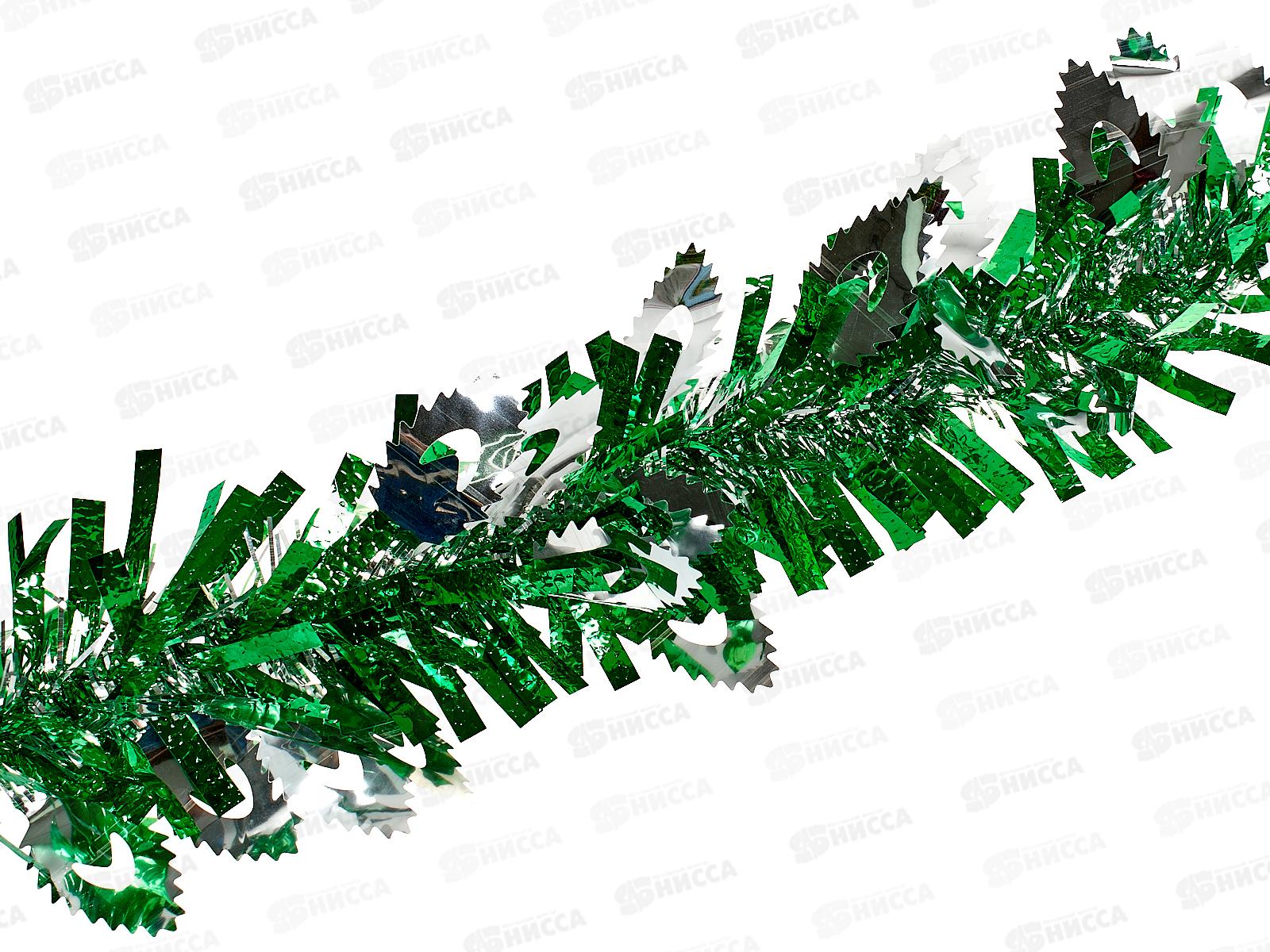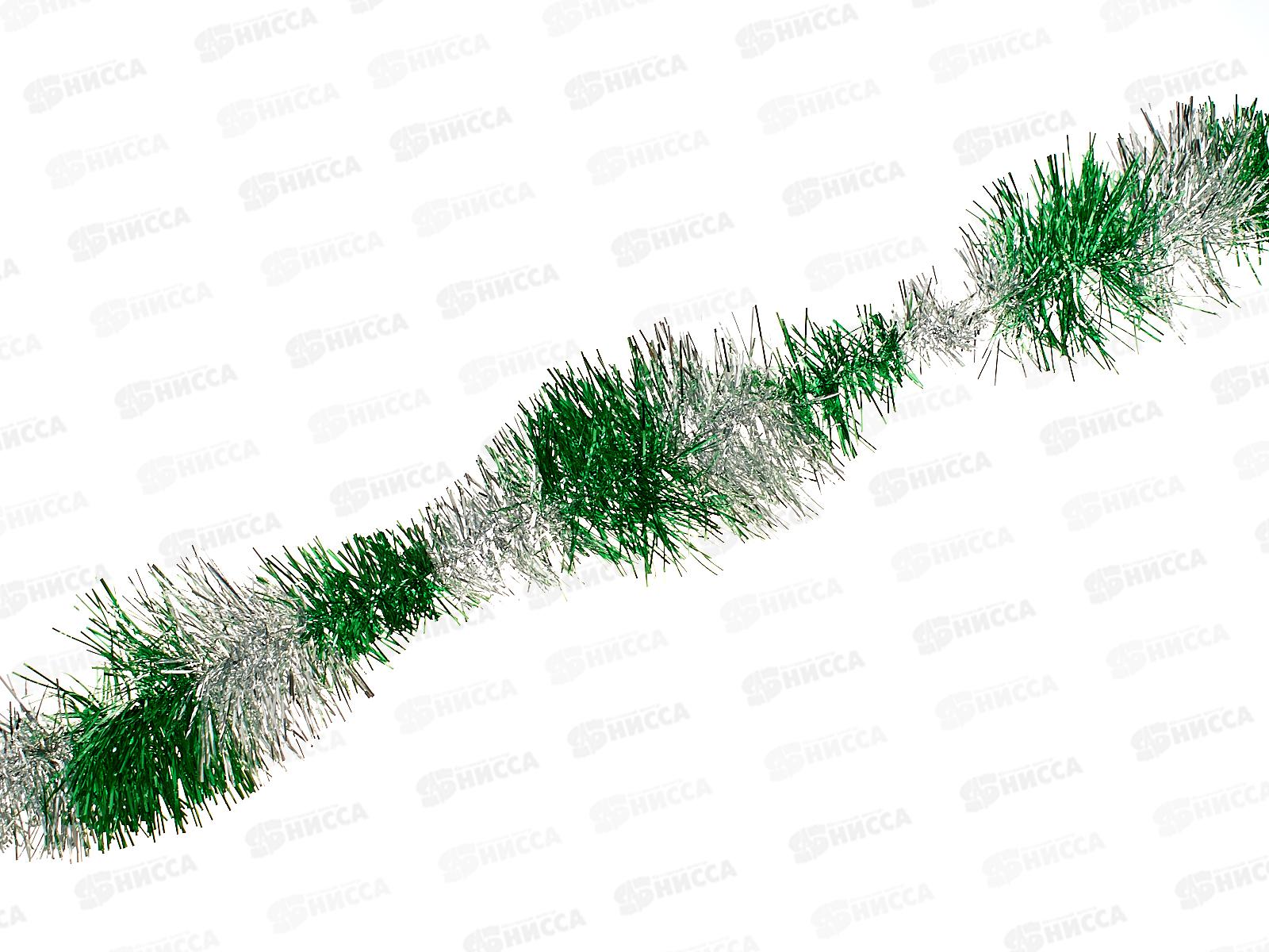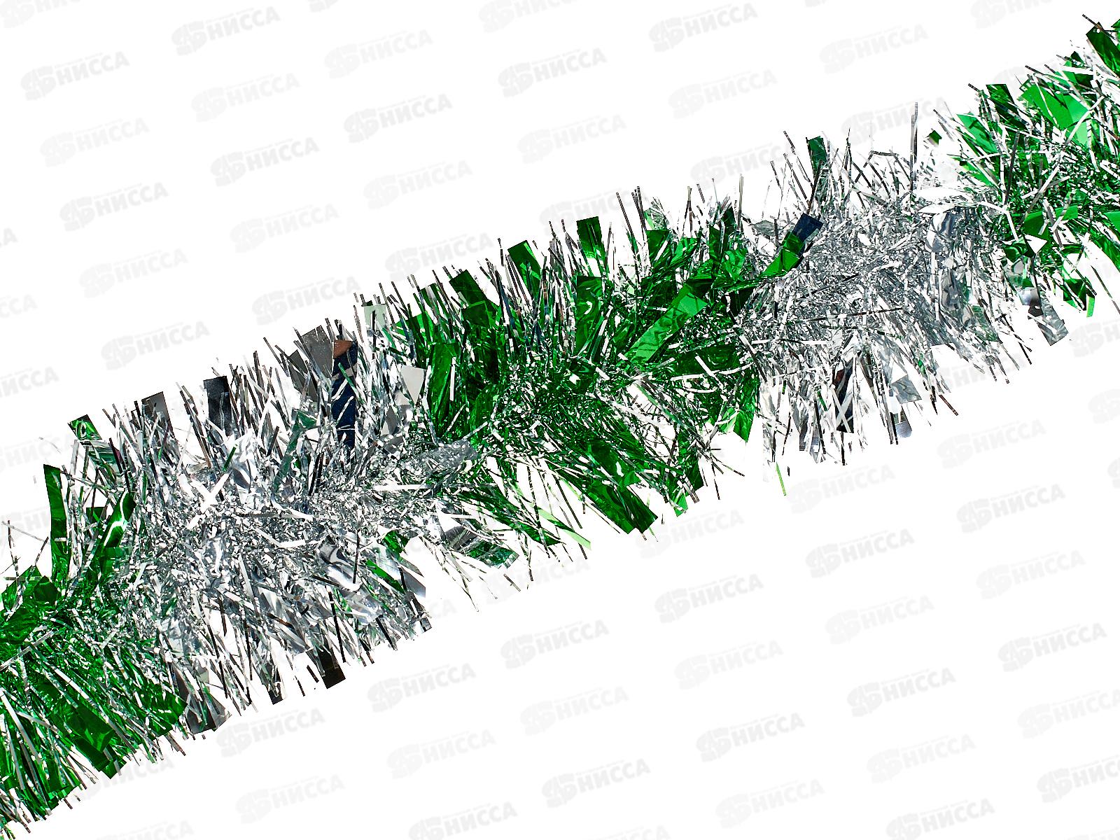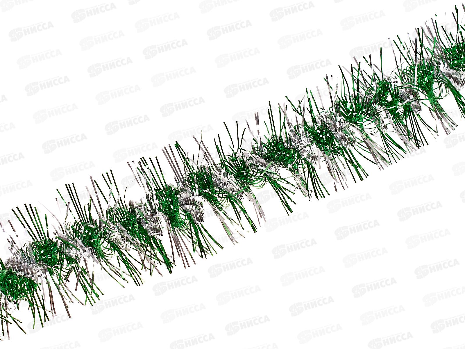 Код:593770; Мишура 002015 крученая с цветным кончиком, люкс 9смх2м.зеленый-серебро AL-3342,*800