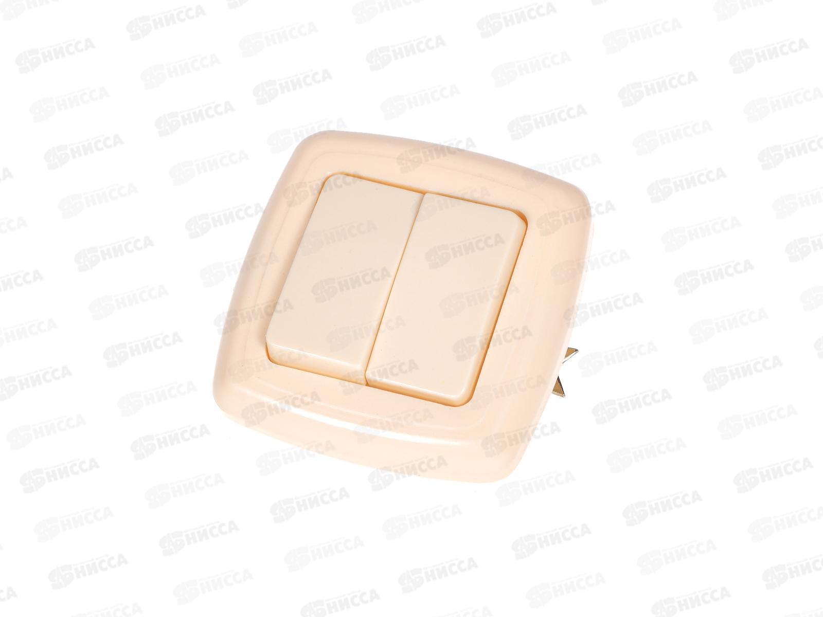 Код:566945; Выключатель открытая установка 2клавиши IP20 10А, сл.кость, с подсветкой, "Дача", 0017 *10/100