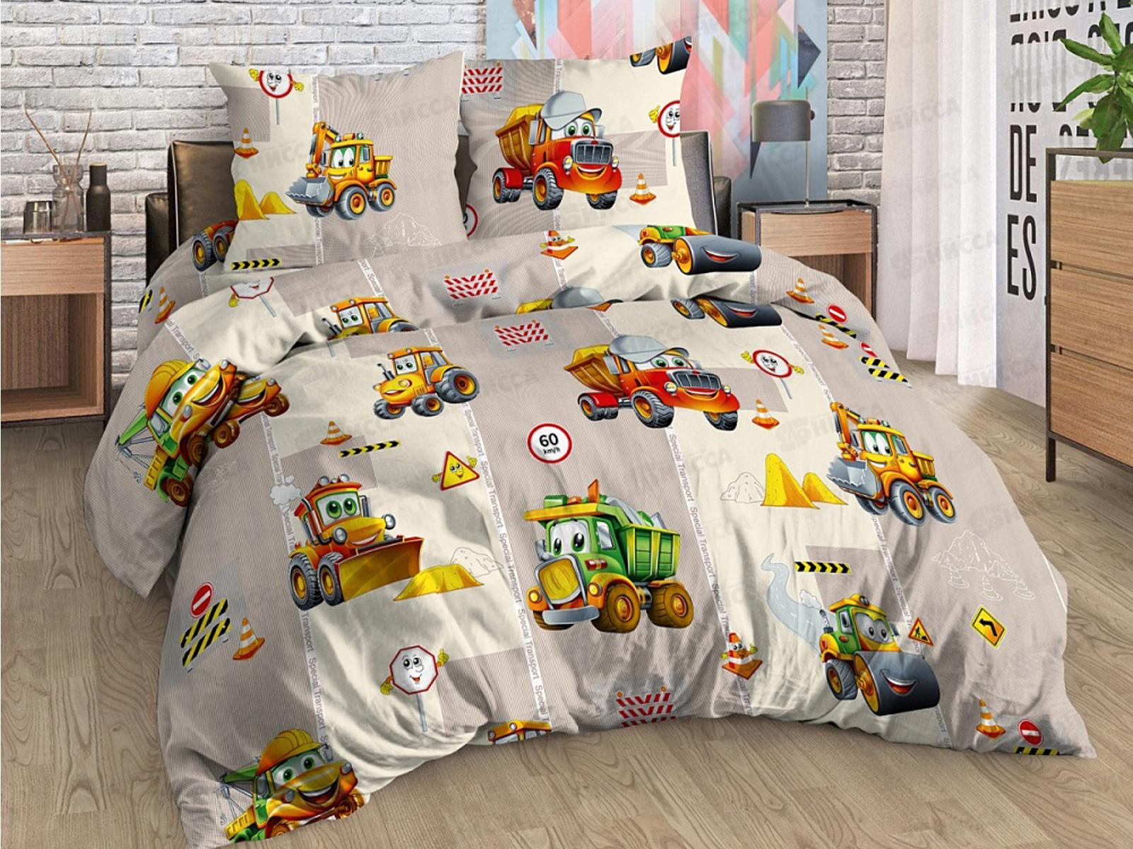 Код:604085; КПБ детский бязь Грузовичок 150*100