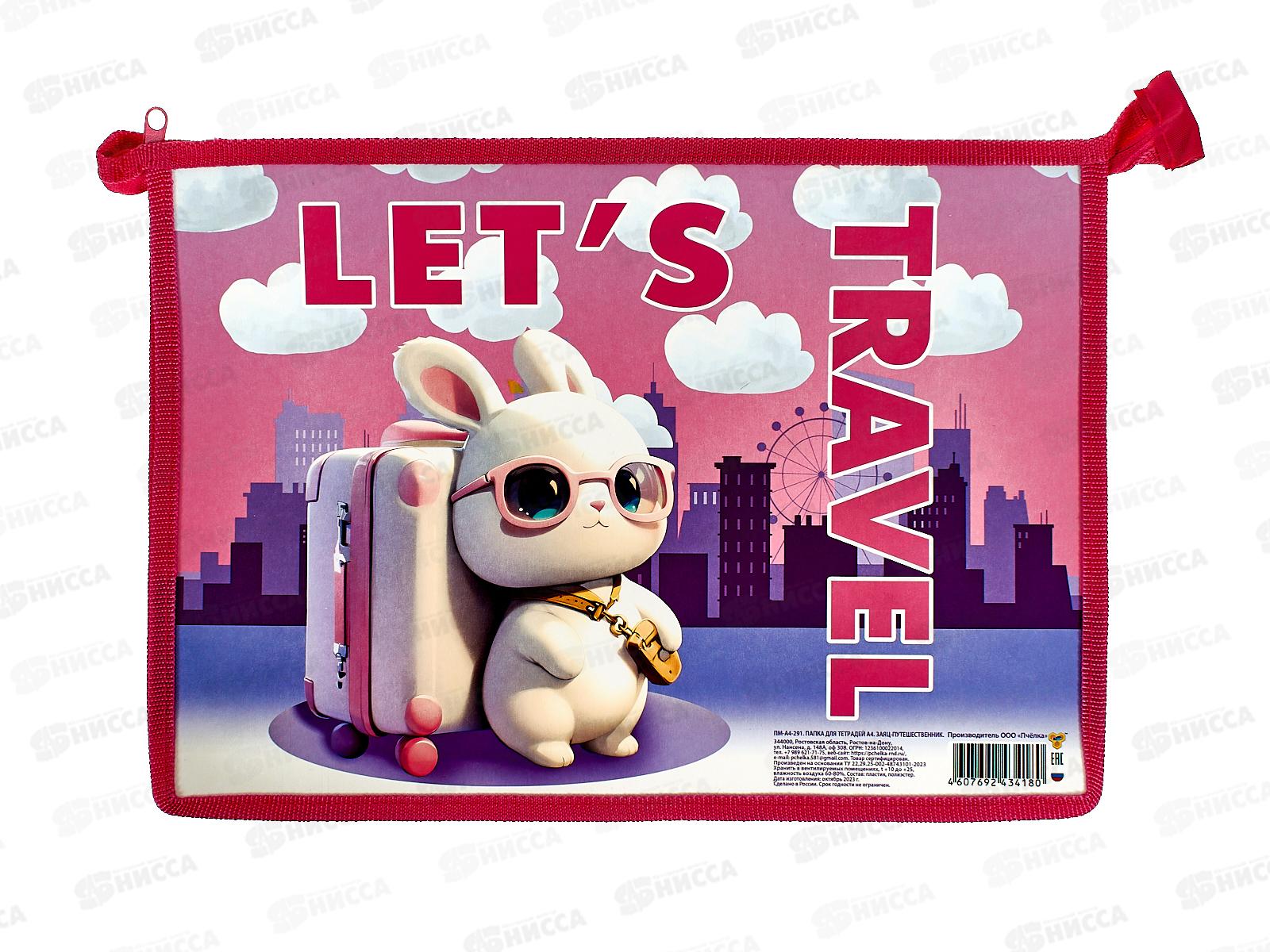 Код:534254; Папка д/тетр. ПЧЕЛКА А4 молн., Заяц-путешественник ПМ-А4-291 *60