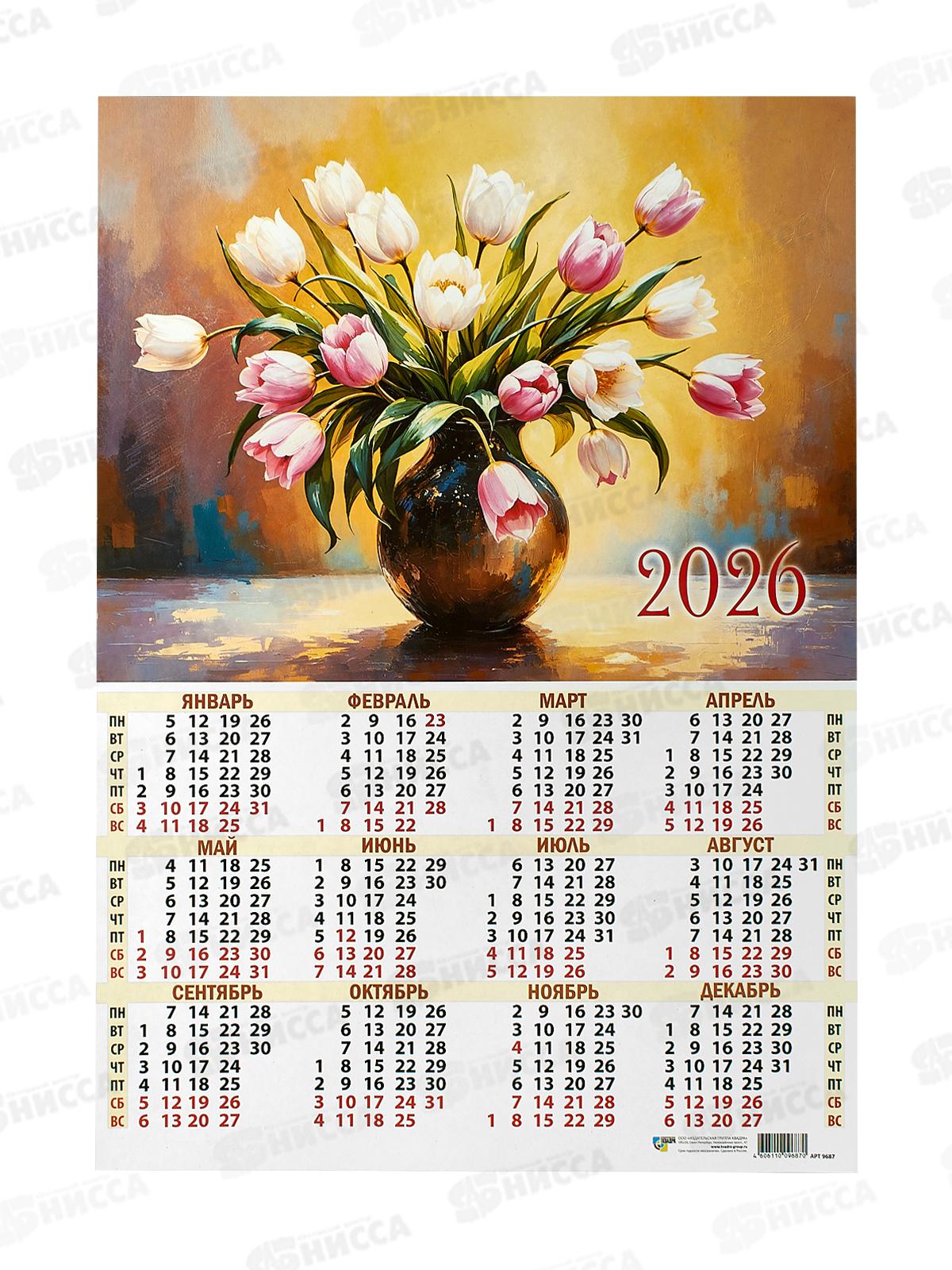Код:582573; Календарь листовой 2026 А3 КП Цветы, 9687 *10