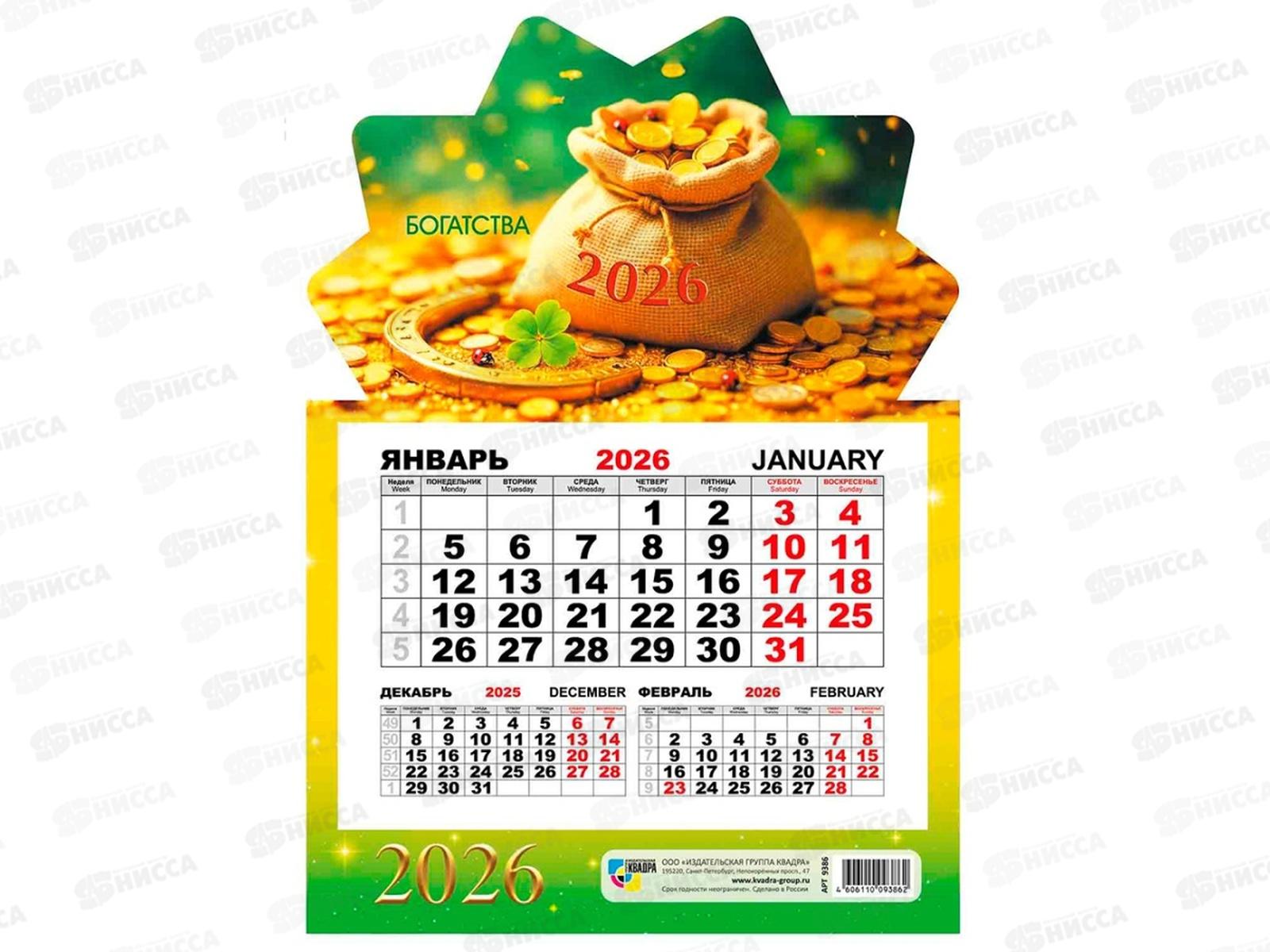 Код:592033; Календарь моно на магните 2026 КП Богатства, 9386