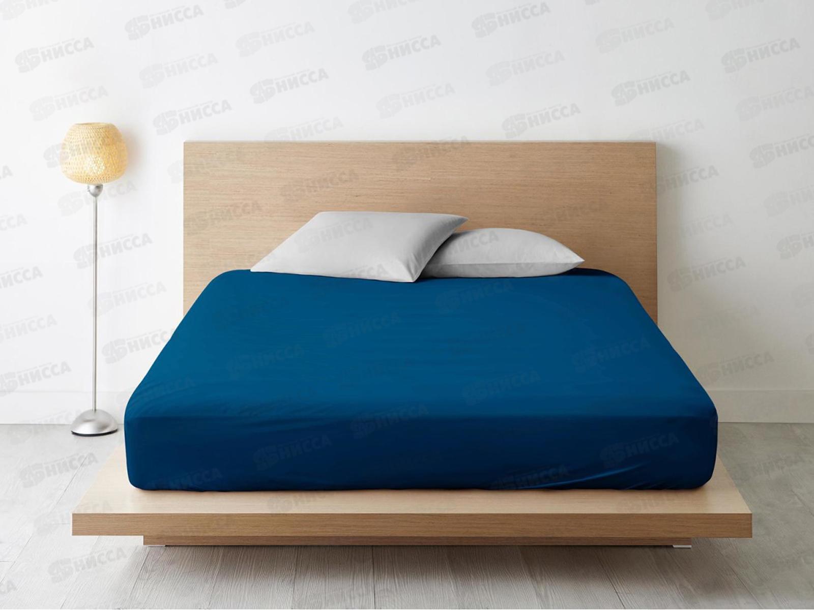 Код:596210; Простыня на резинке поплин 180*200*35 Индиго