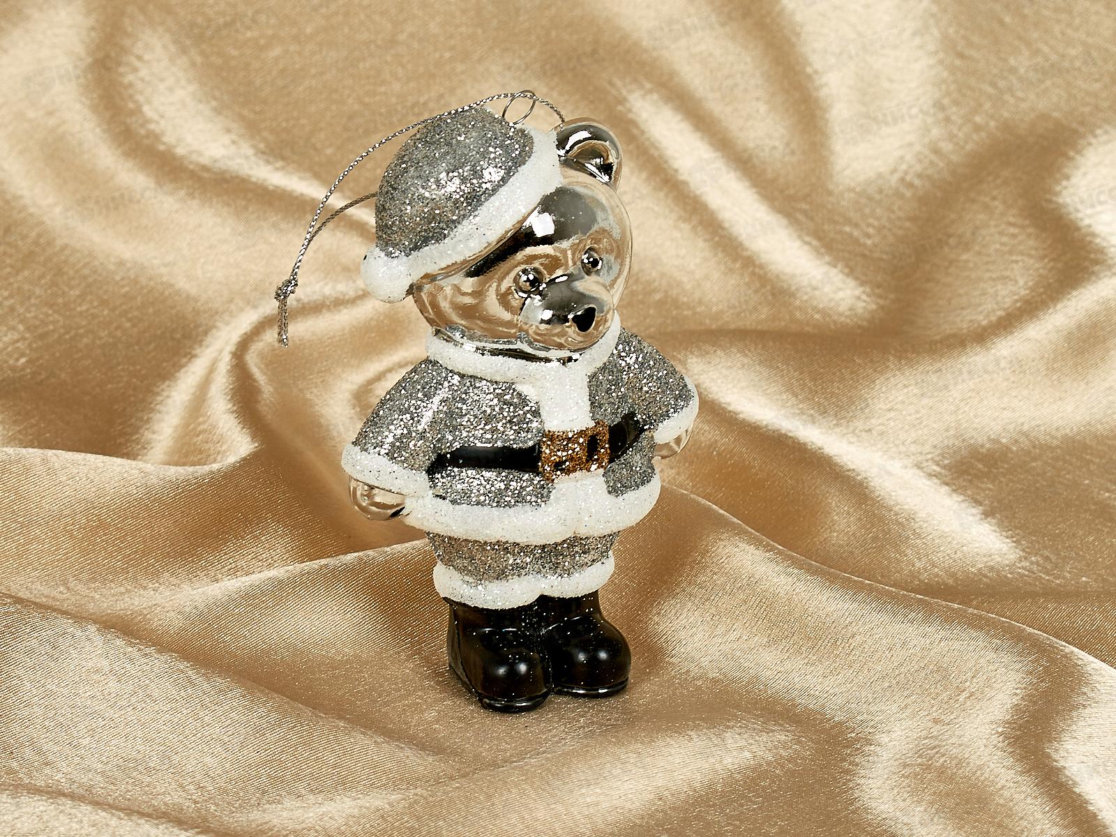 Код:541371; Елочная игрушка Милый мишка 8*9см серебро 107-6157