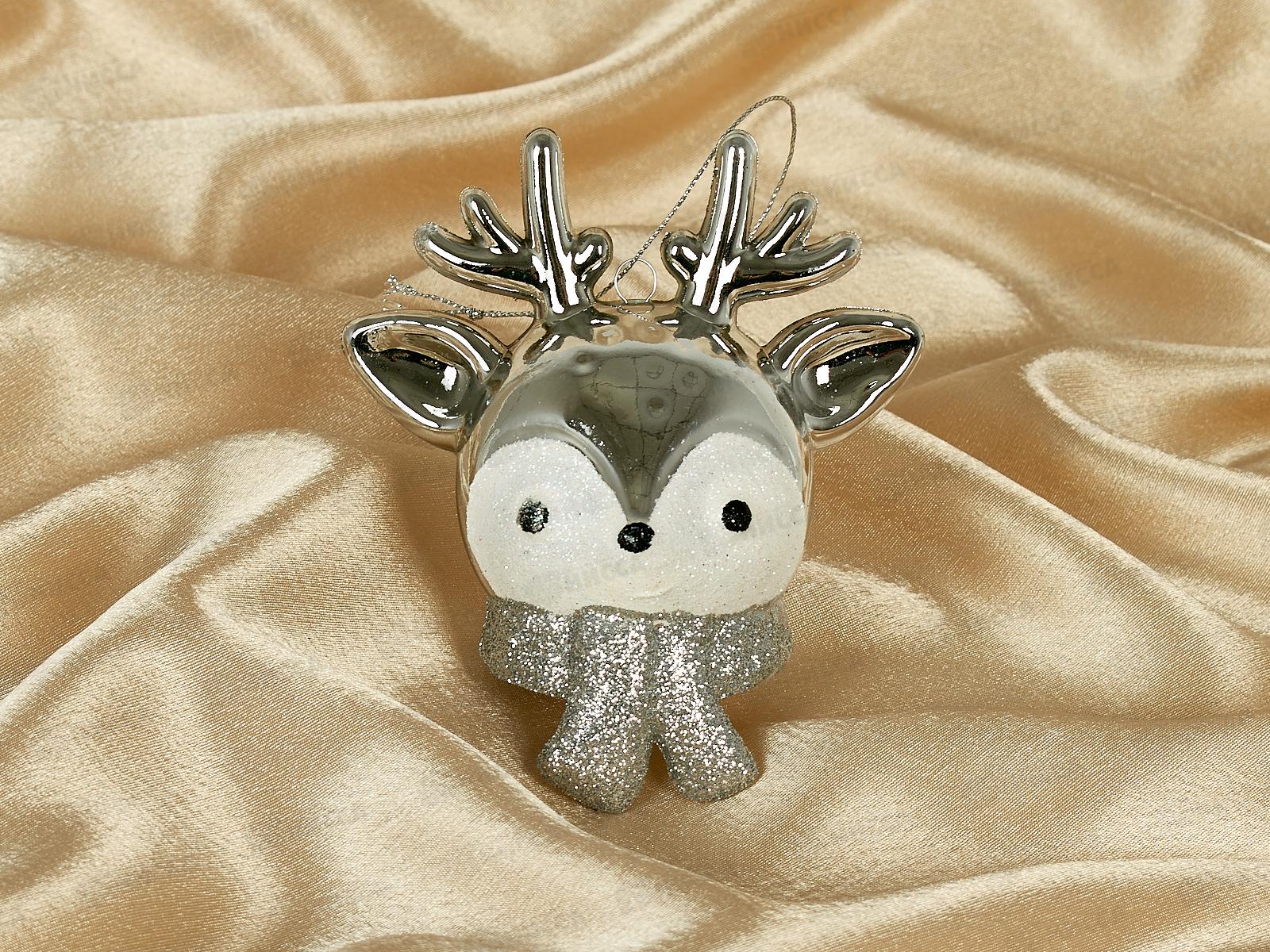 Код:586584; Елочная игрушка Новогодний олененок 7*10,5см серебро 916-1136