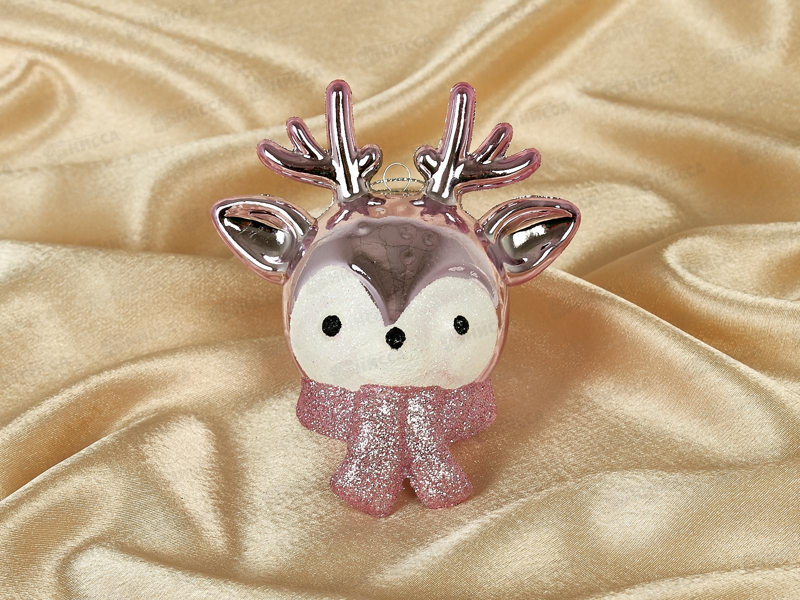 Код:586585; Елочная игрушка Новогодний олененок 7*10,5см розовый 916-1138