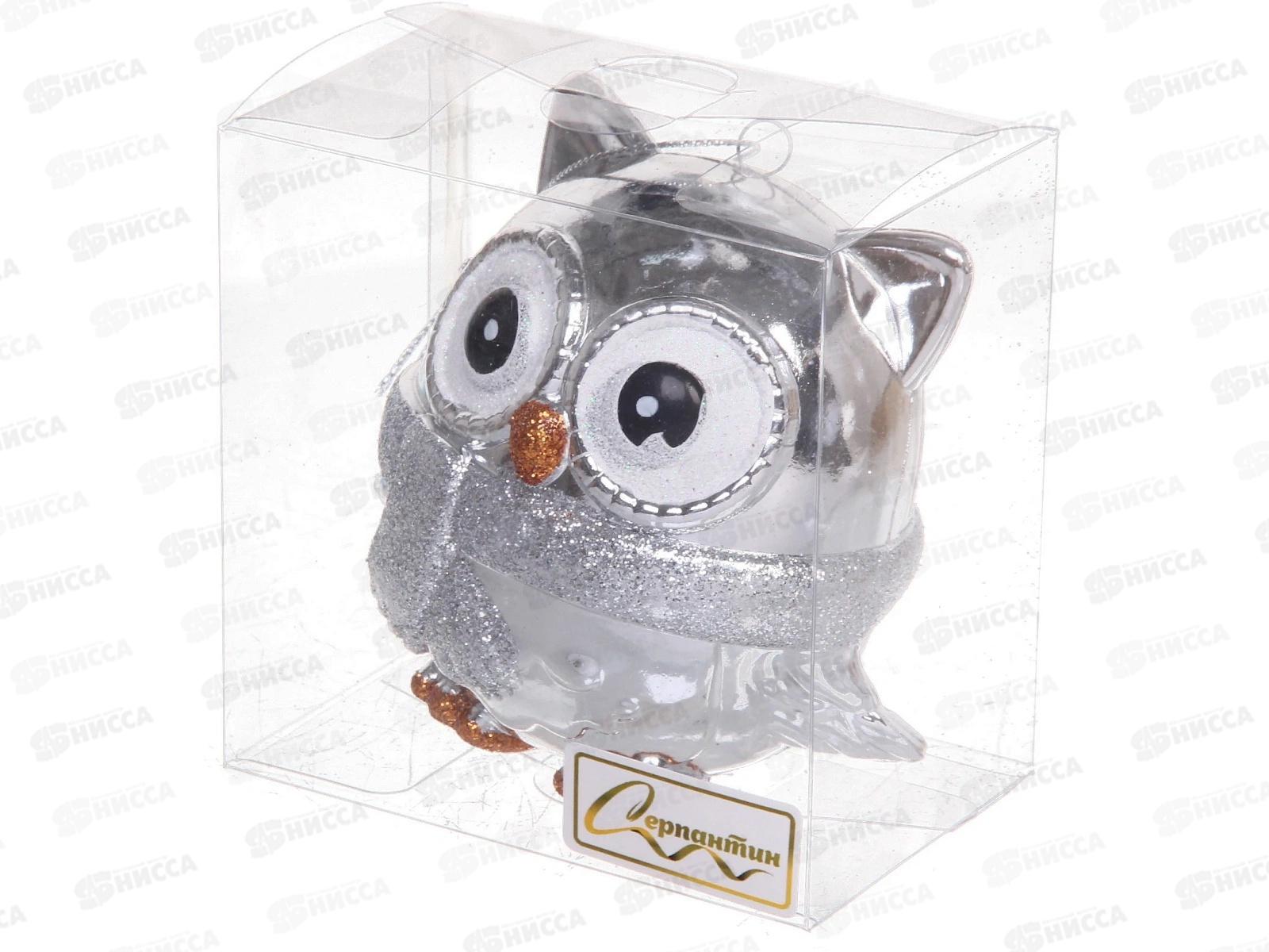 Код:588419; Елочная игрушка Мудрая сова 10*5*10см серебро 916-0736