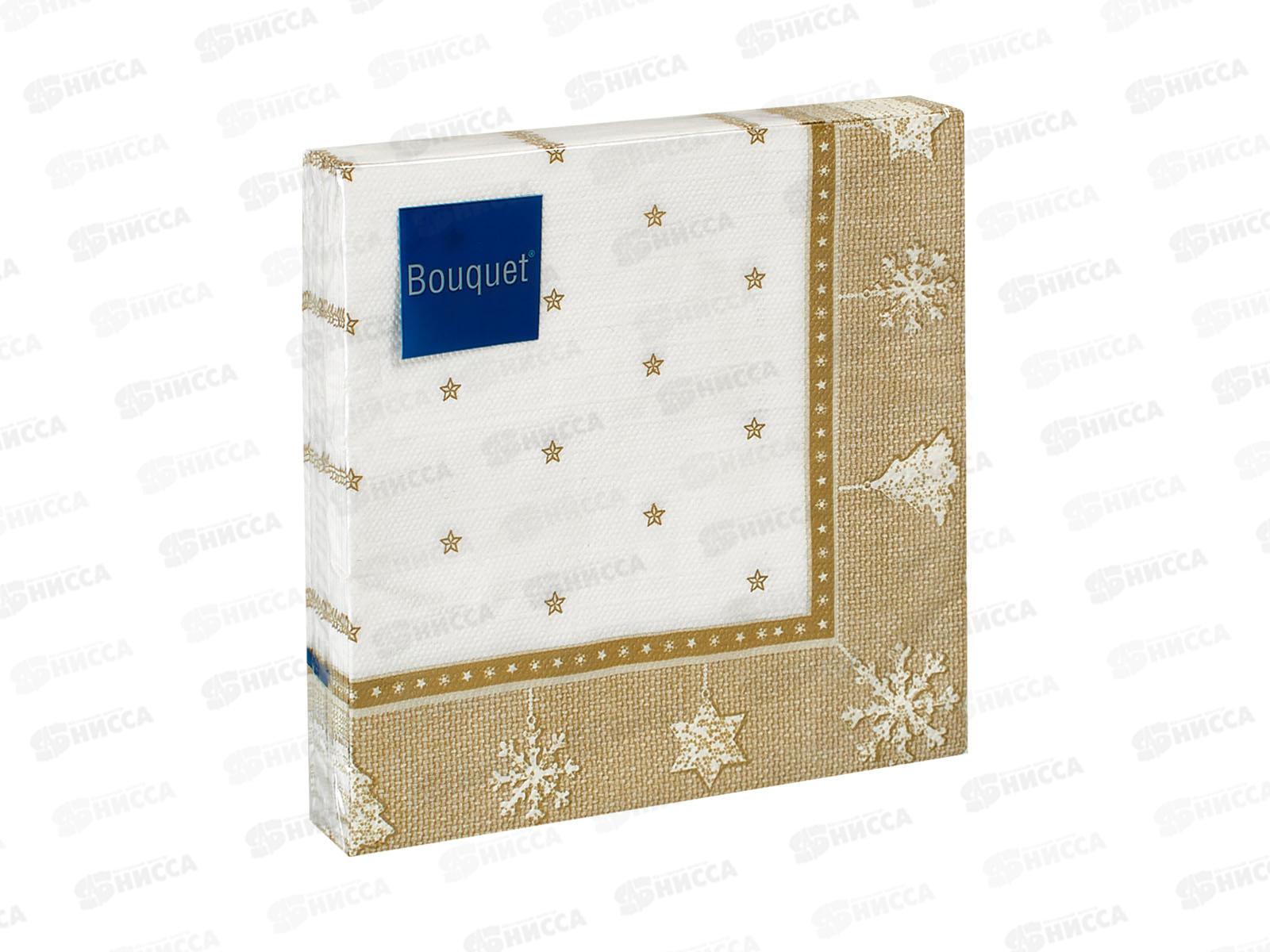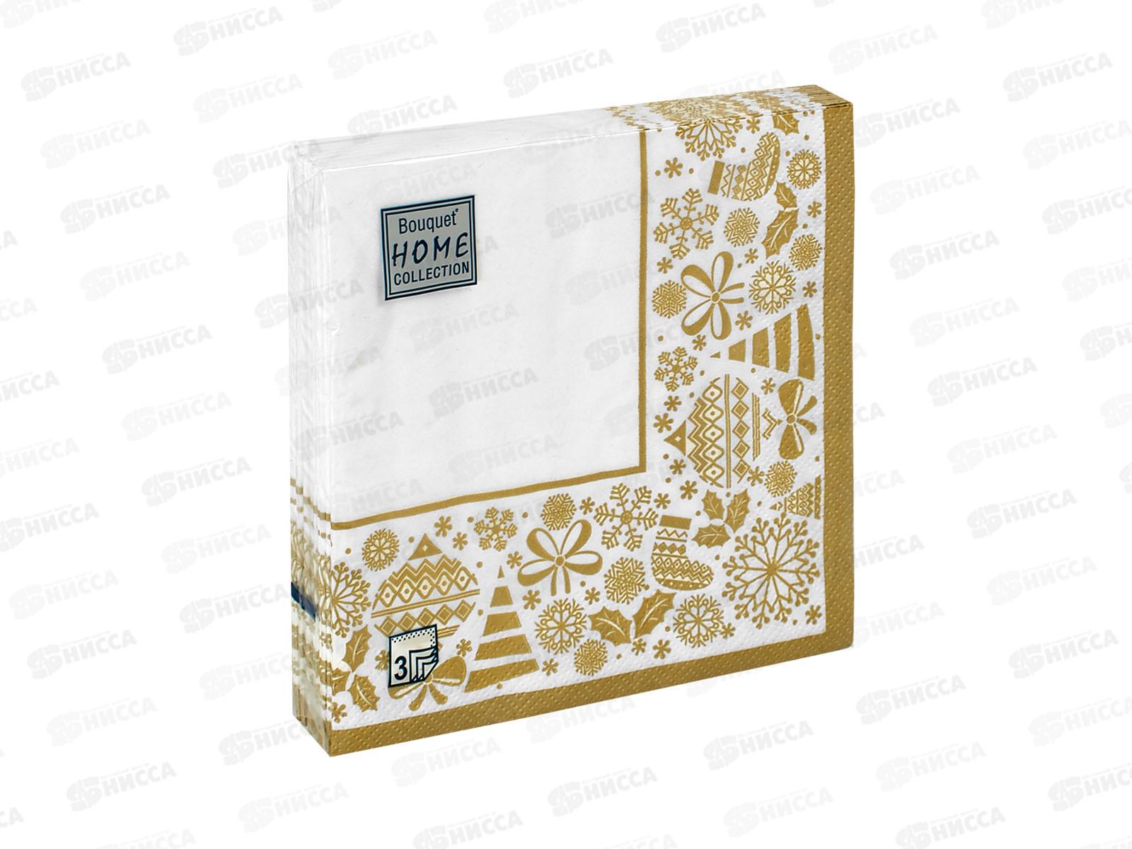 Код:583598; Салфетки 3сл 20л 33*33 Bouquet Home Новог.скатерть.Золот.на бел 37786