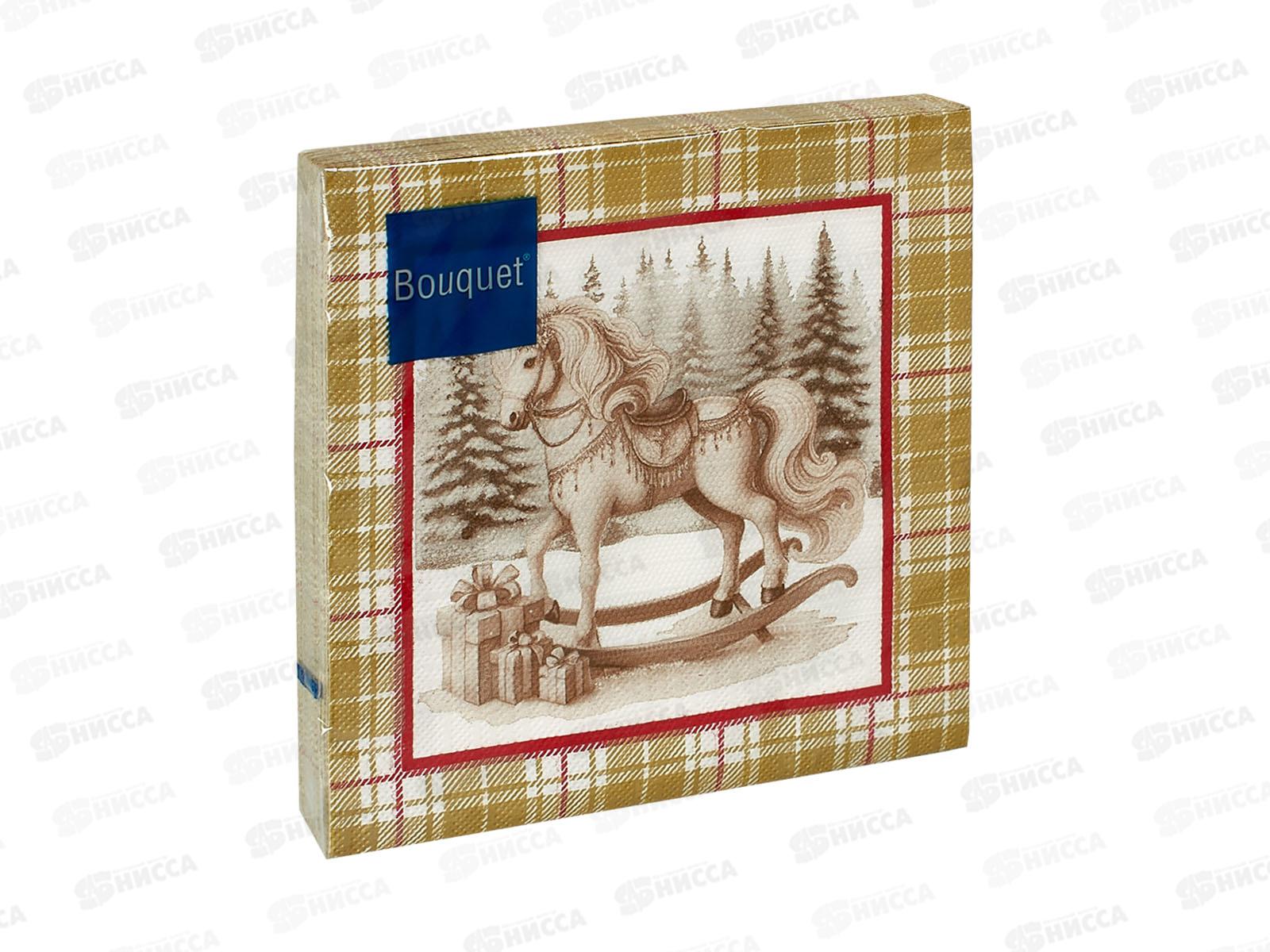 Код:583568; Салфетки 3сл 20л 33*33 Bouquet Home Новогод.лошадка.Красн.фон 25402*12