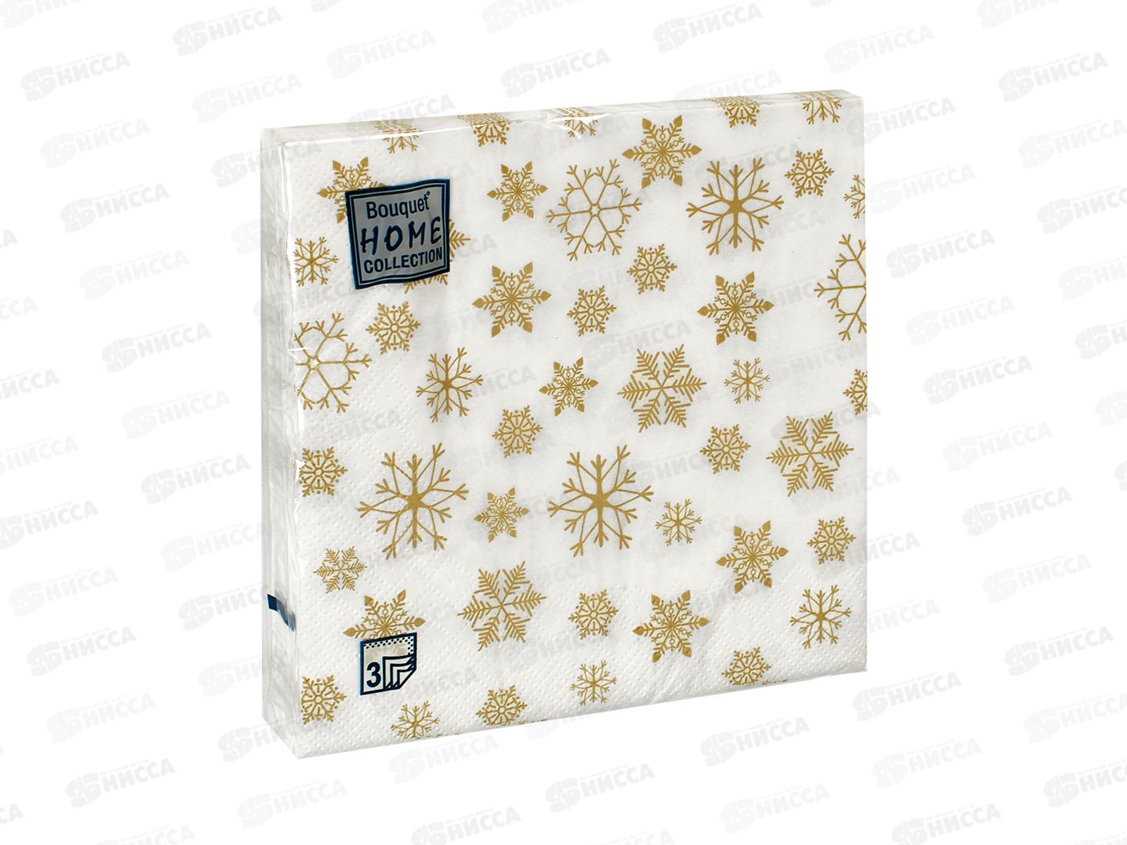 Код:583580; Салфетки 3сл 20л 33*33 Bouquet Home Золотые снежинки 57515*12