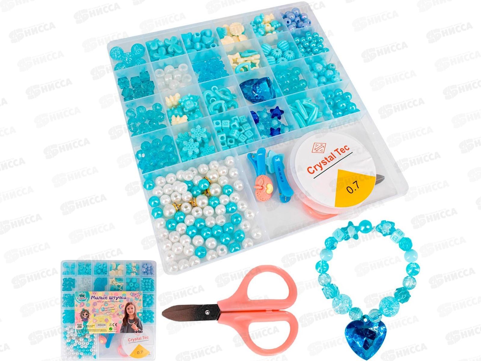 Комплектация: бусины разных форм и цветов (25 видов), мини-ножницы – 1 шт, моток лески (0,7 м) – 1 шт, заколки – 2 шт, пластиковый бокс для хранения –...