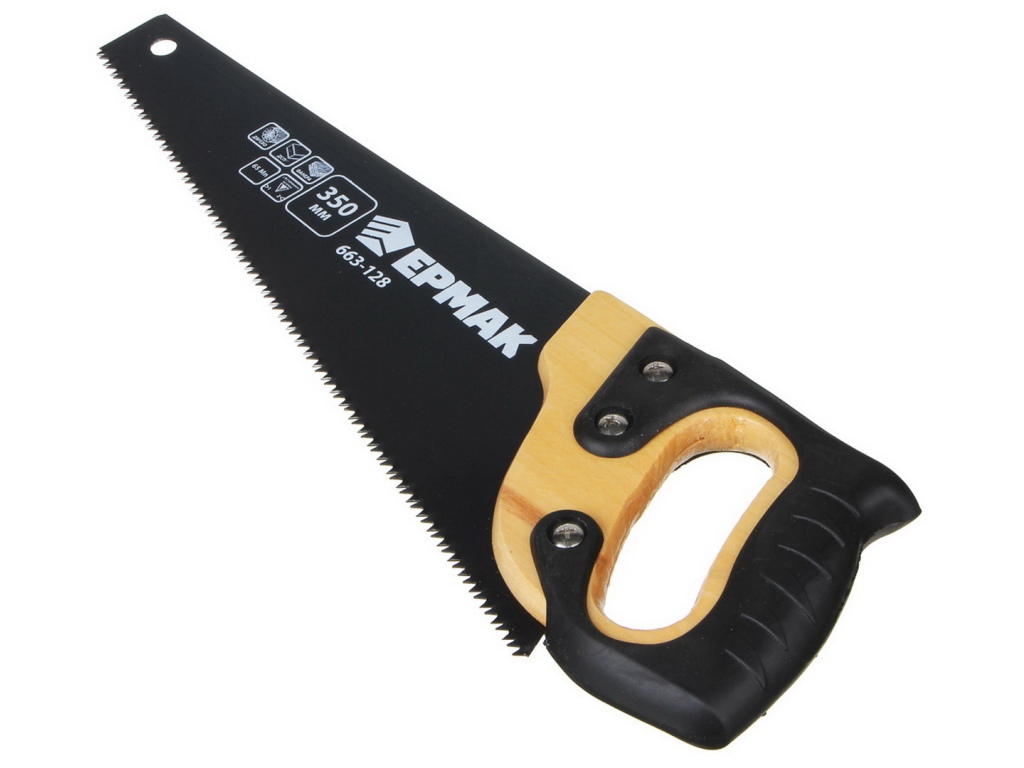 Код:350880; Ножовка по дереву "Ермак" 350мм деревянная ручка 663-128 г