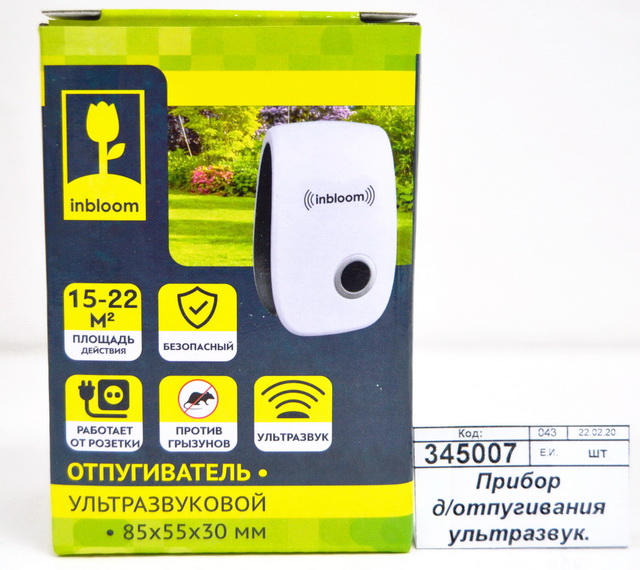 Код:602273; Отпугиватель насекомых и грызунов 3Вт, 15-60м2 INBLOOM 156-001 г