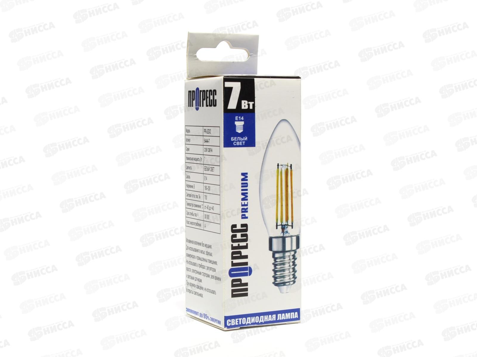 Код:353273; Лампа светодиодная Прогресс Premium 7Вт E14 С35F свеча, белый свет *10
