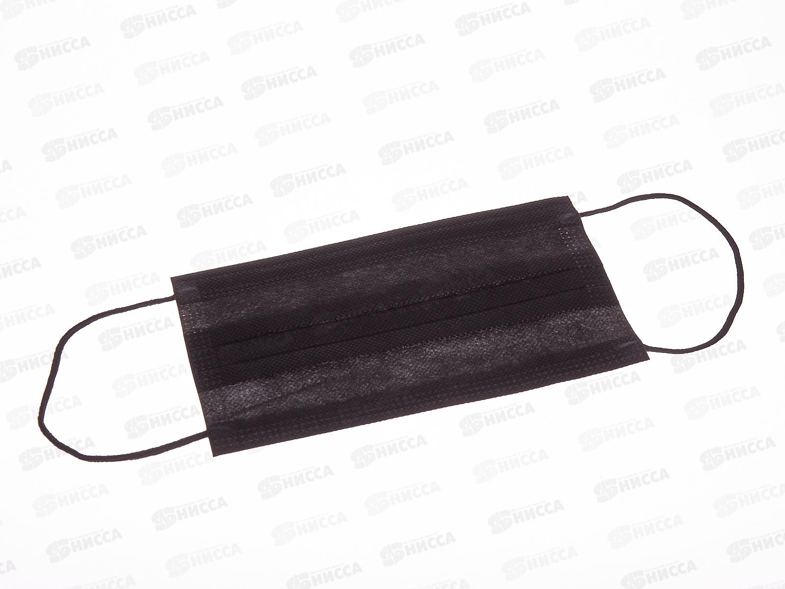 Код:380650; Маска лицевая защитная 3-х слойная одноразовая Черная (не являет медиц) 50шт