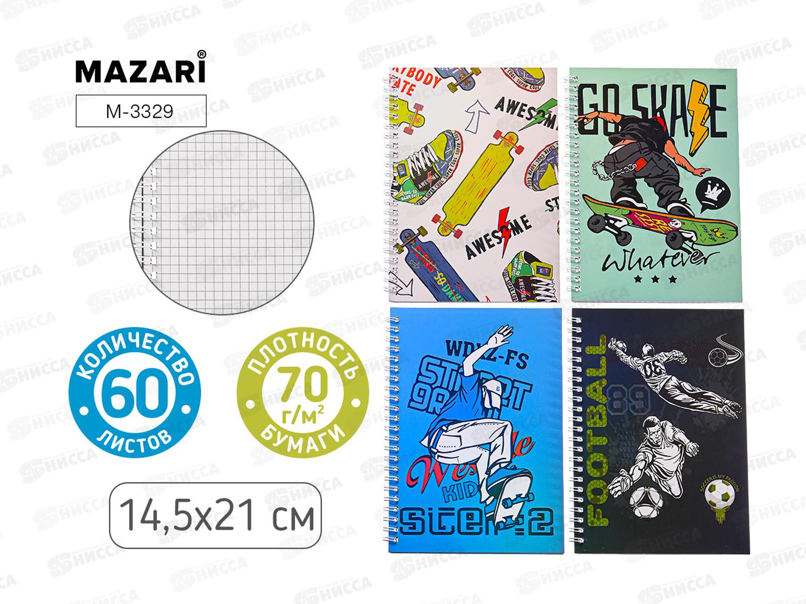 Код:602907; Блокнот 60л MAZARI 14,5*21см, на евроспир.клетка 4диз. M-3331 *12