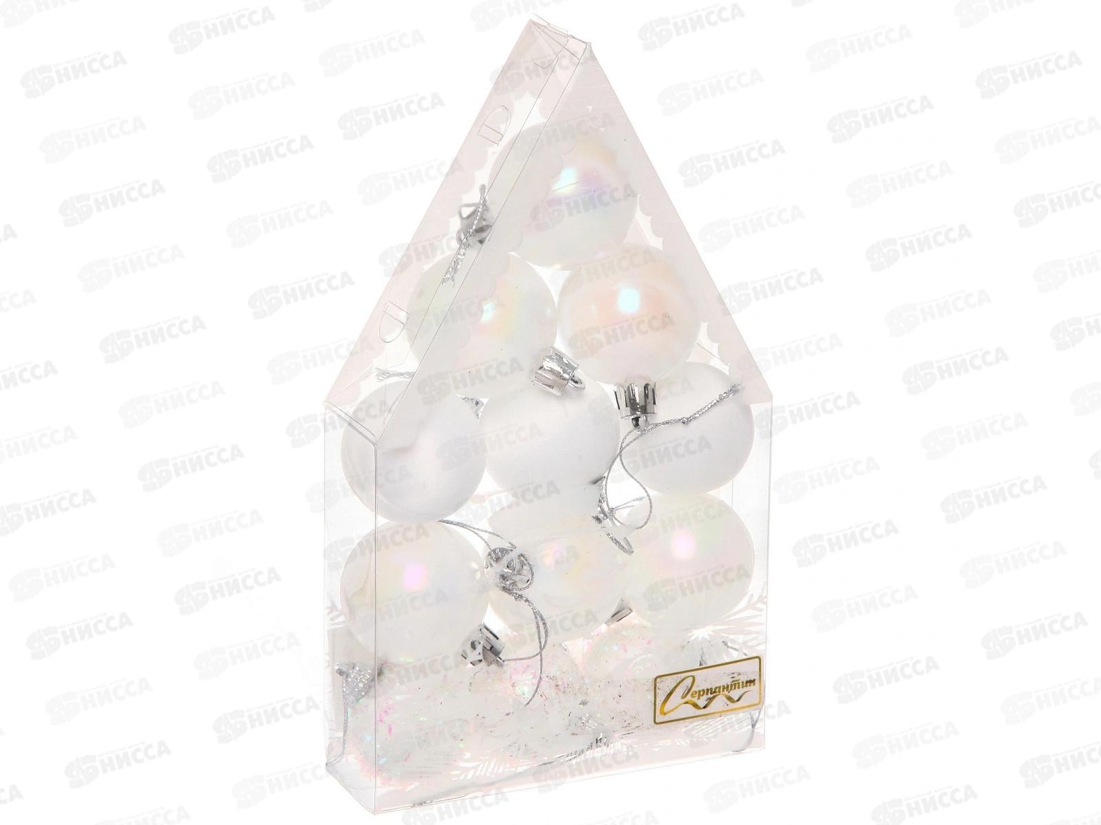 Код:587335; Набор елочных украшений 12шт Белое очарование 4см белый 201-5280