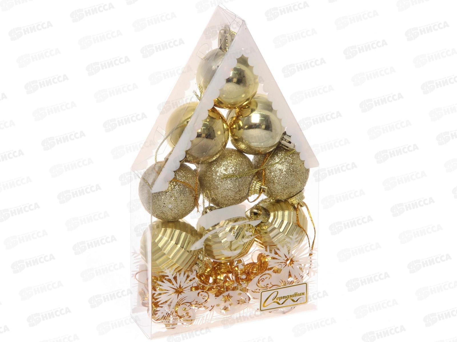 Код:587336; Набор елочных украшений 12шт Золотое очарование 4см 201-5281