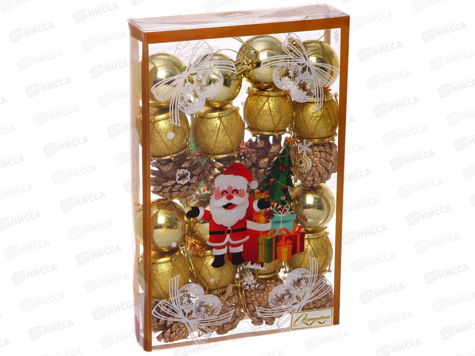 Код:587372; Набор елочных украшений 24шт "Встречай новый год" 4см золото 201-5341
