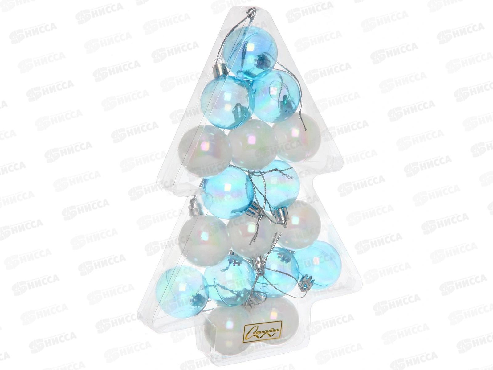 Код:458812; Набор елочных украшений 13шт Волшебное сияние 4см голубой/серебро 201-1645