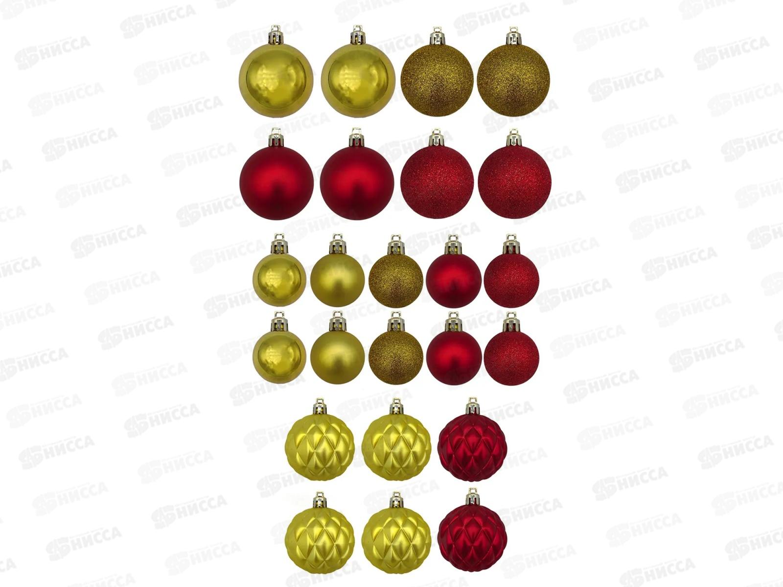 Код:590041; Набор шаров 24шт, Красный, Золотой в ассорт., 96256