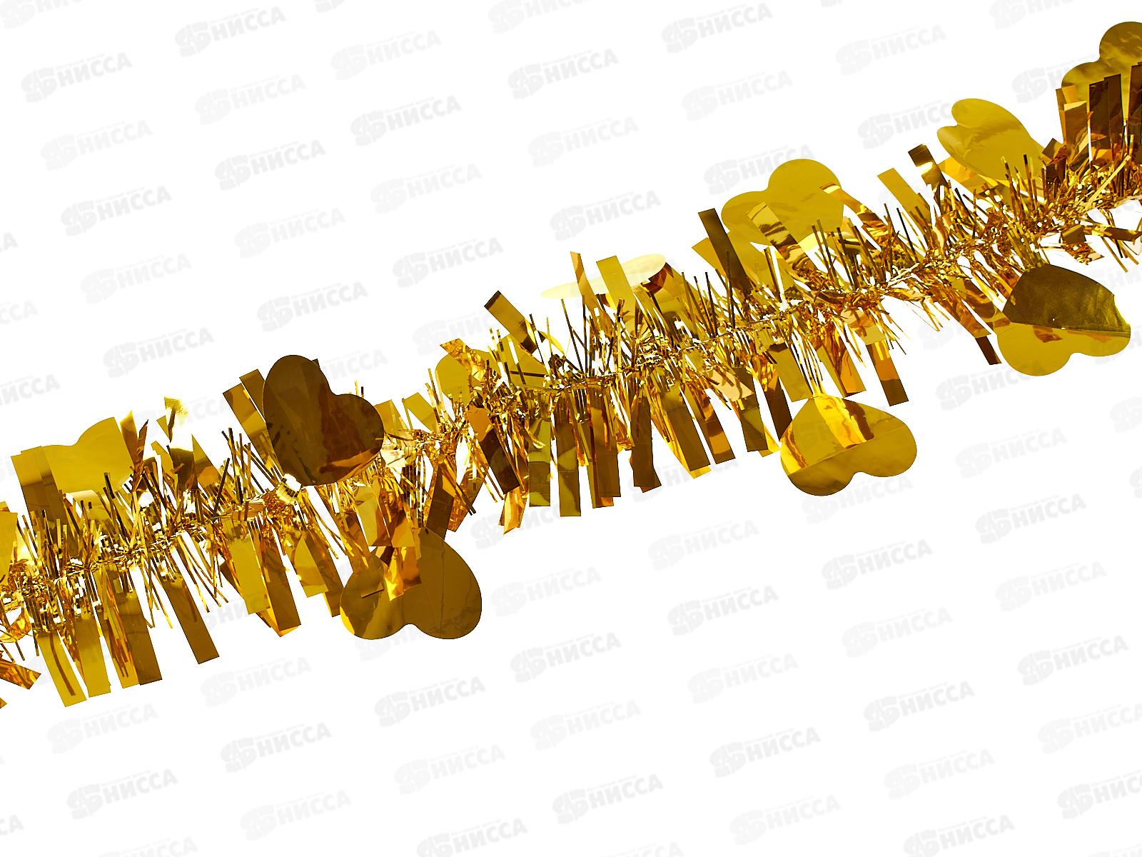 Код:170199; Новогоднее украшение: Мишура, 8см. х 2м., AL-8020 золото-серебро с сердечками *200