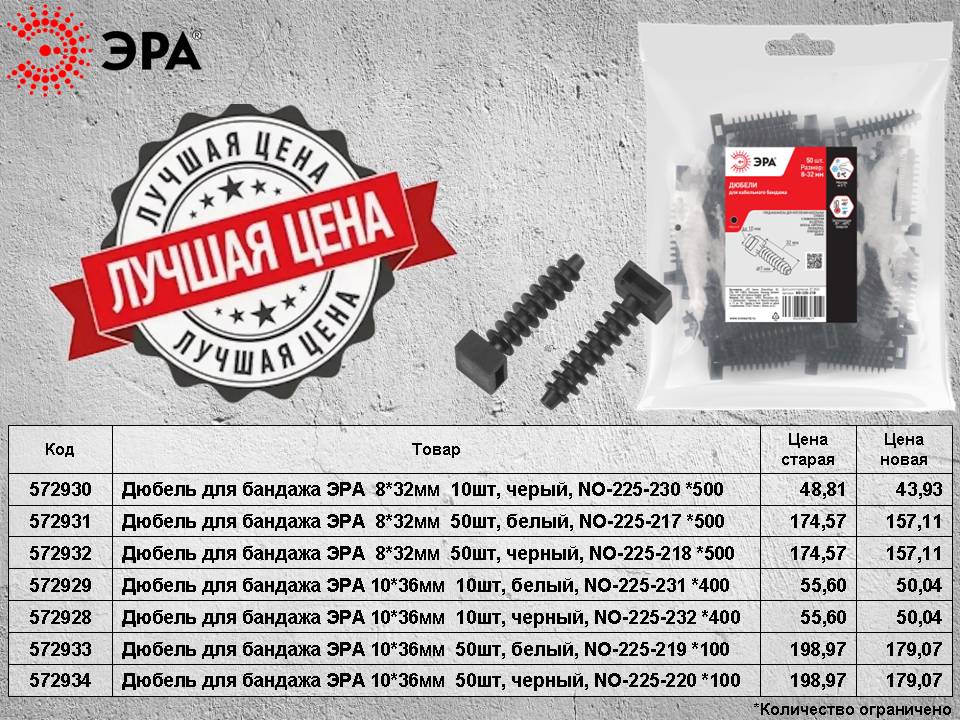 Дюбель для бандажа ЭРА снижение цен!