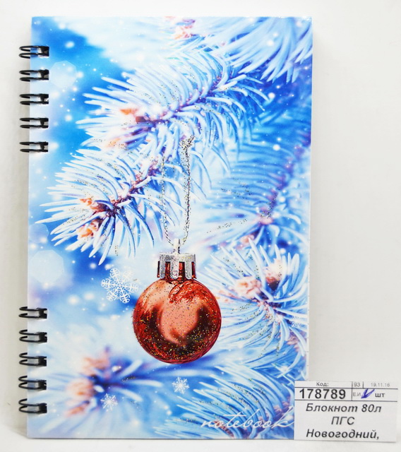 Код:178789; Блокнот 80листов ПГС Новогодний, 100*150, глиттер, на гребне *12